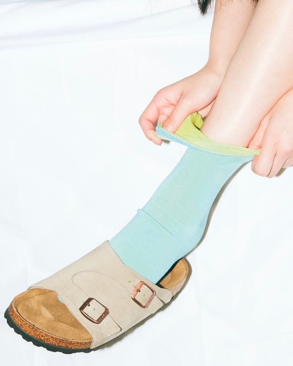 表と裏を異なる配色に仕上げられた、リバーシブル仕様の足袋ソックス。