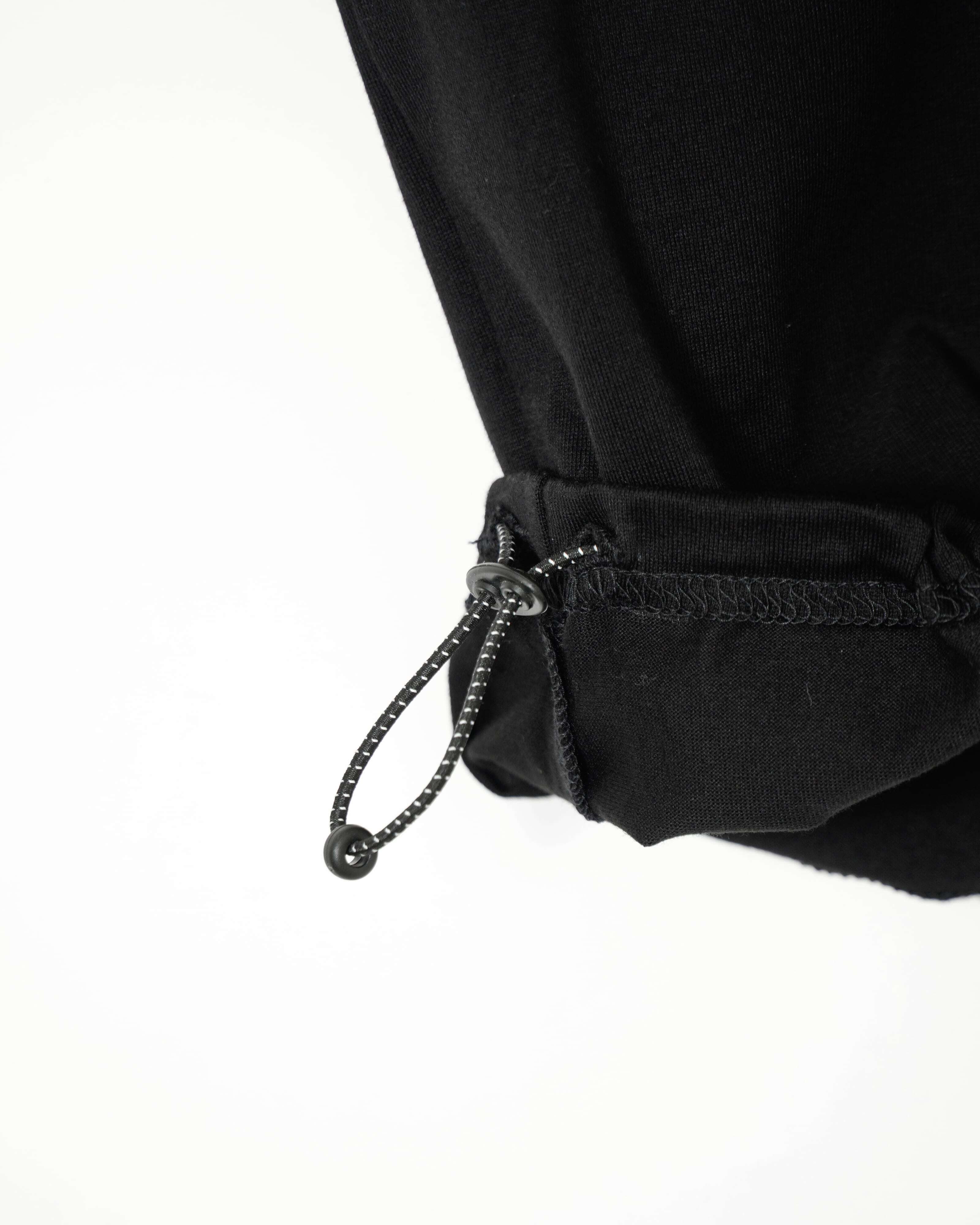 裾にリフレクターのドローコードを配したショートスリーブT。