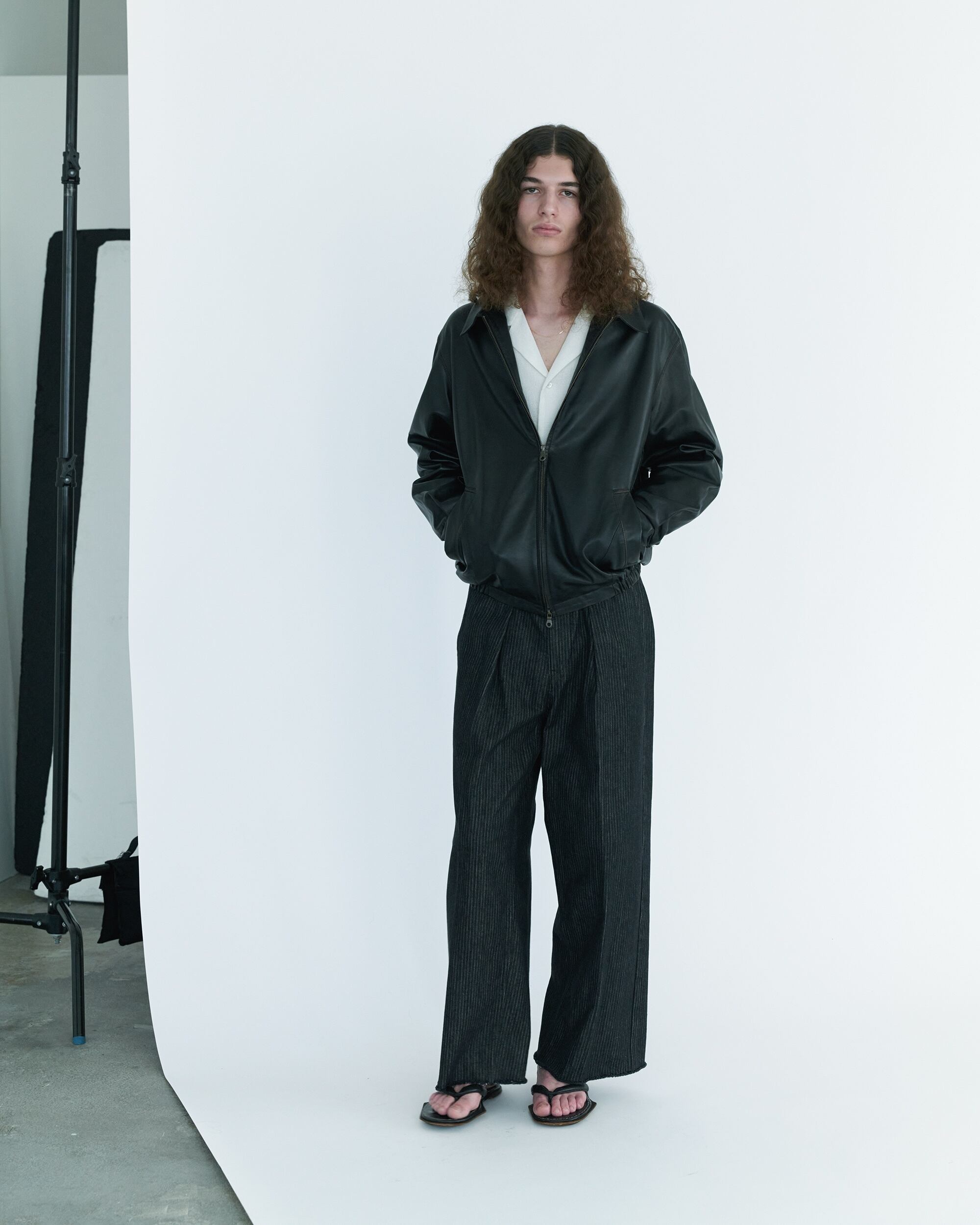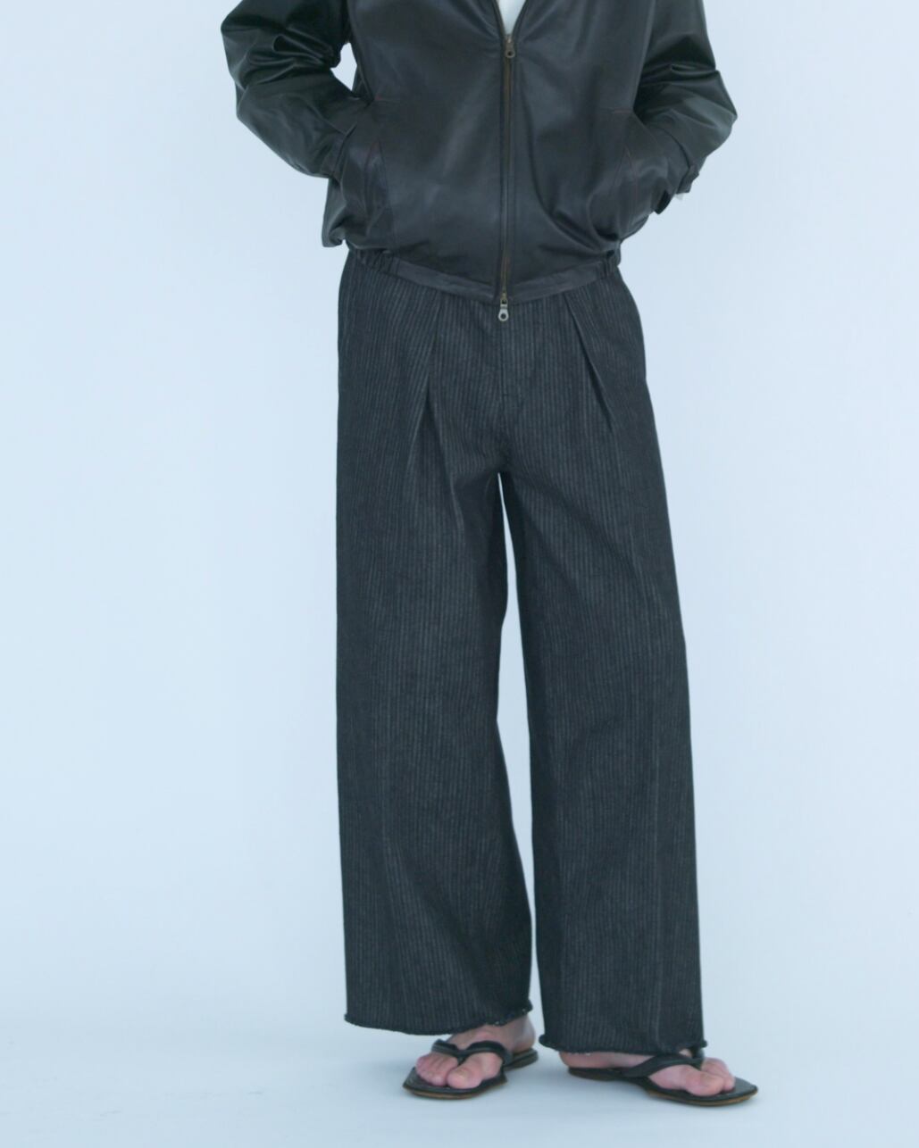 スラックスのディテールにデニム特有の奥行きのある表情が相まった逸品です。
