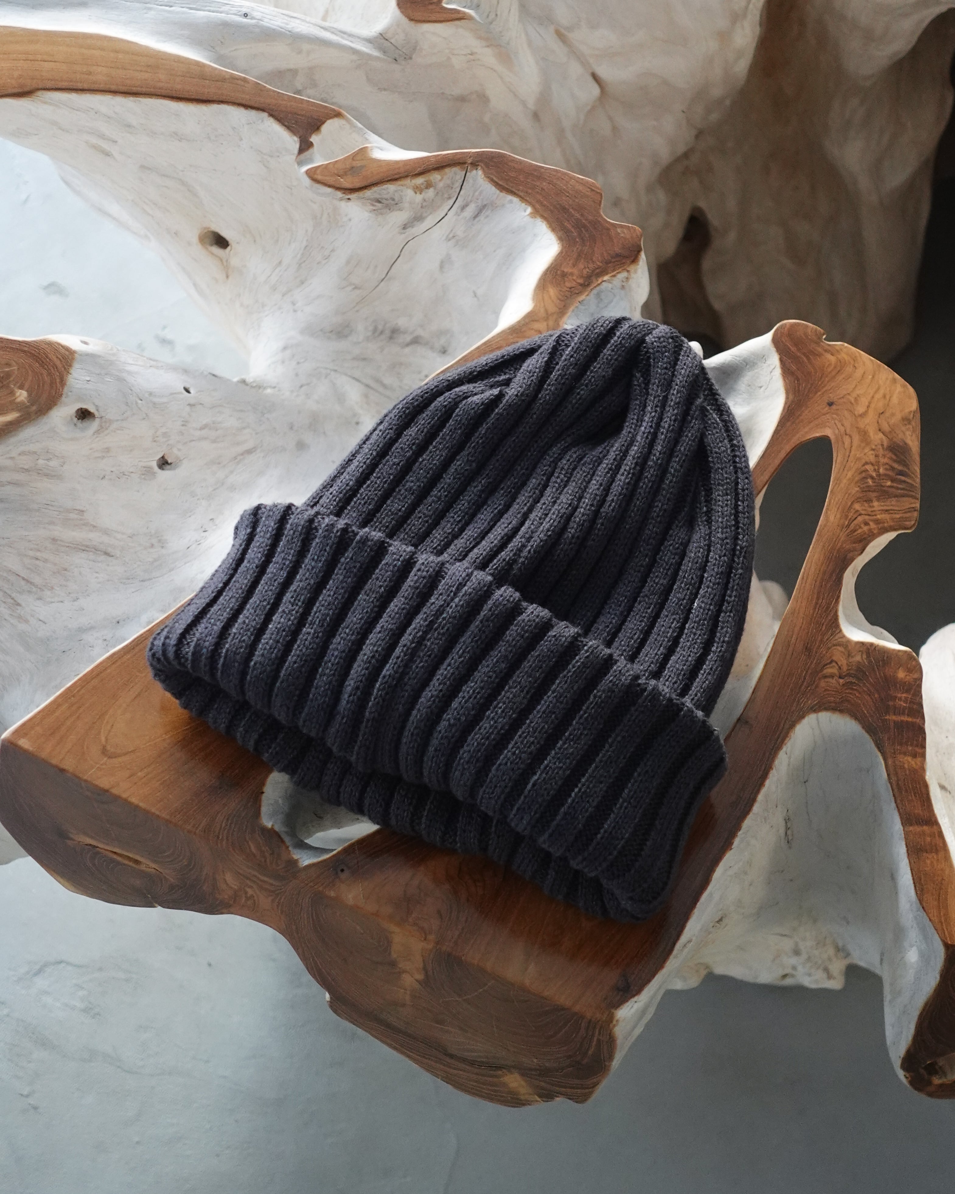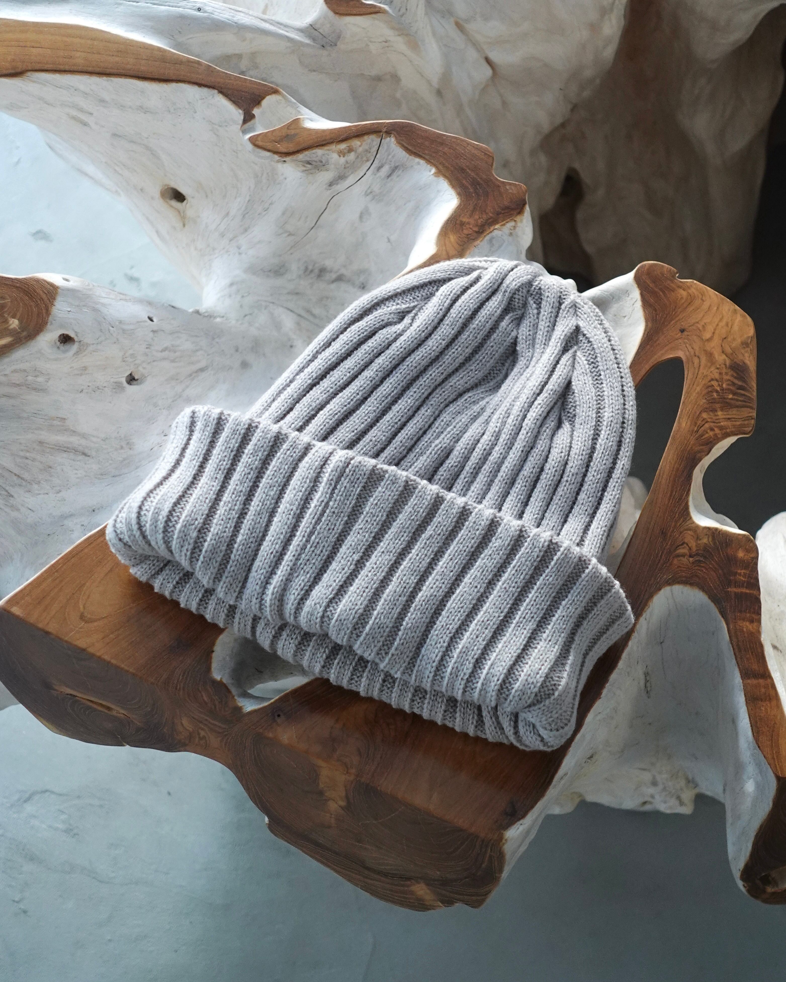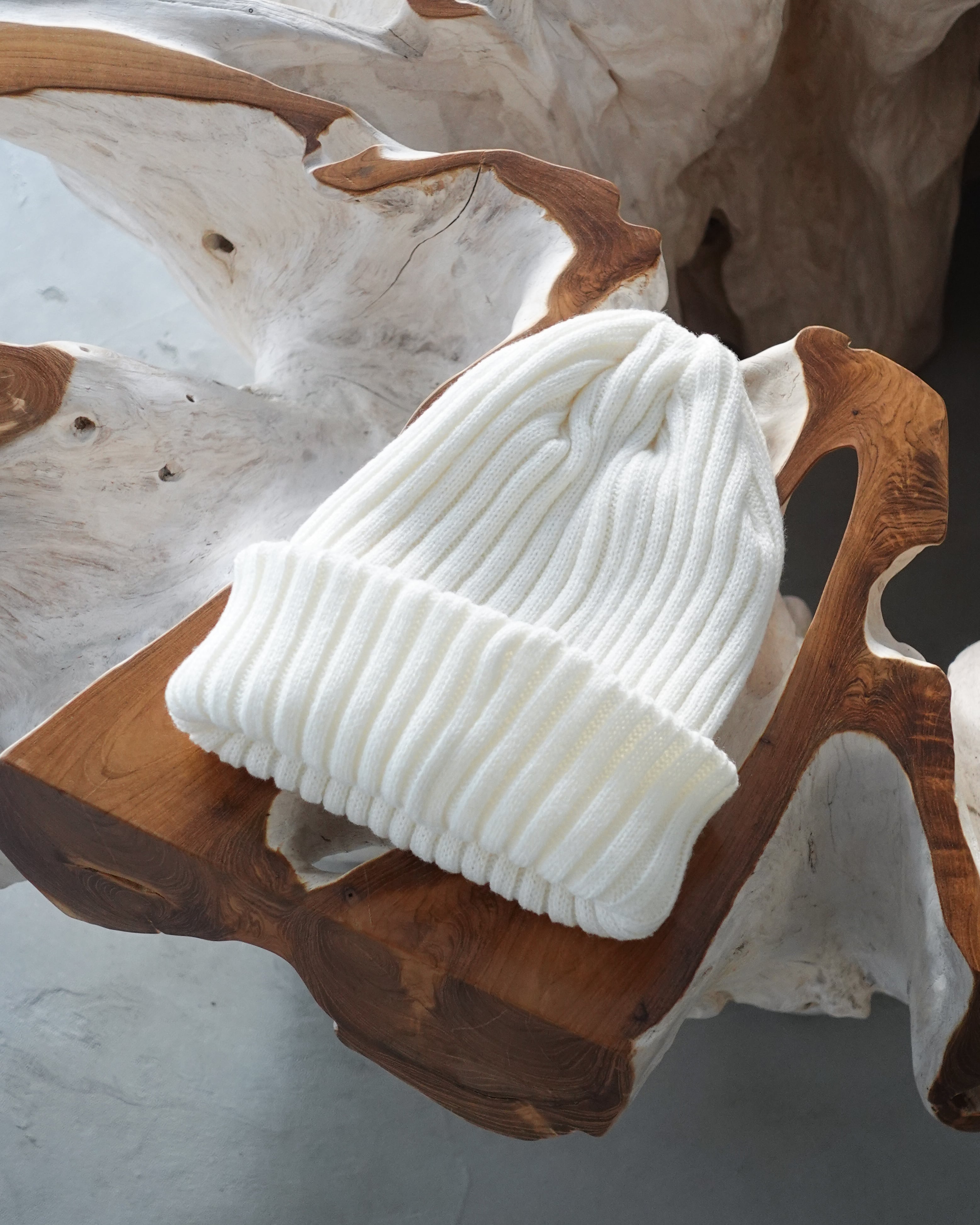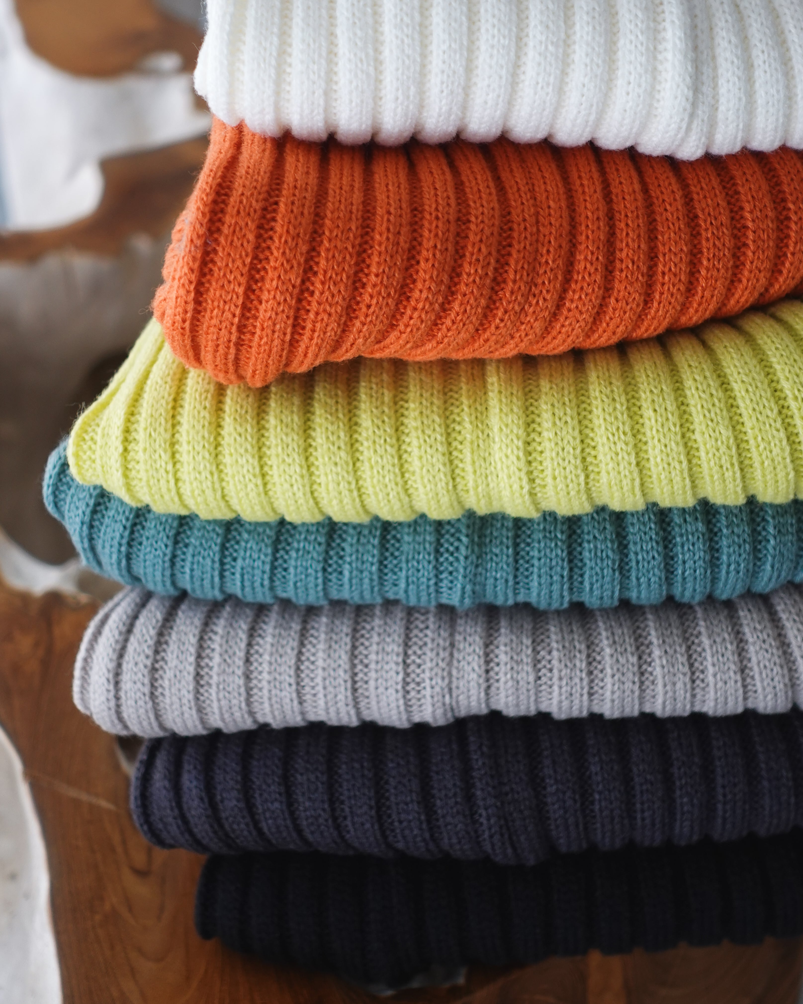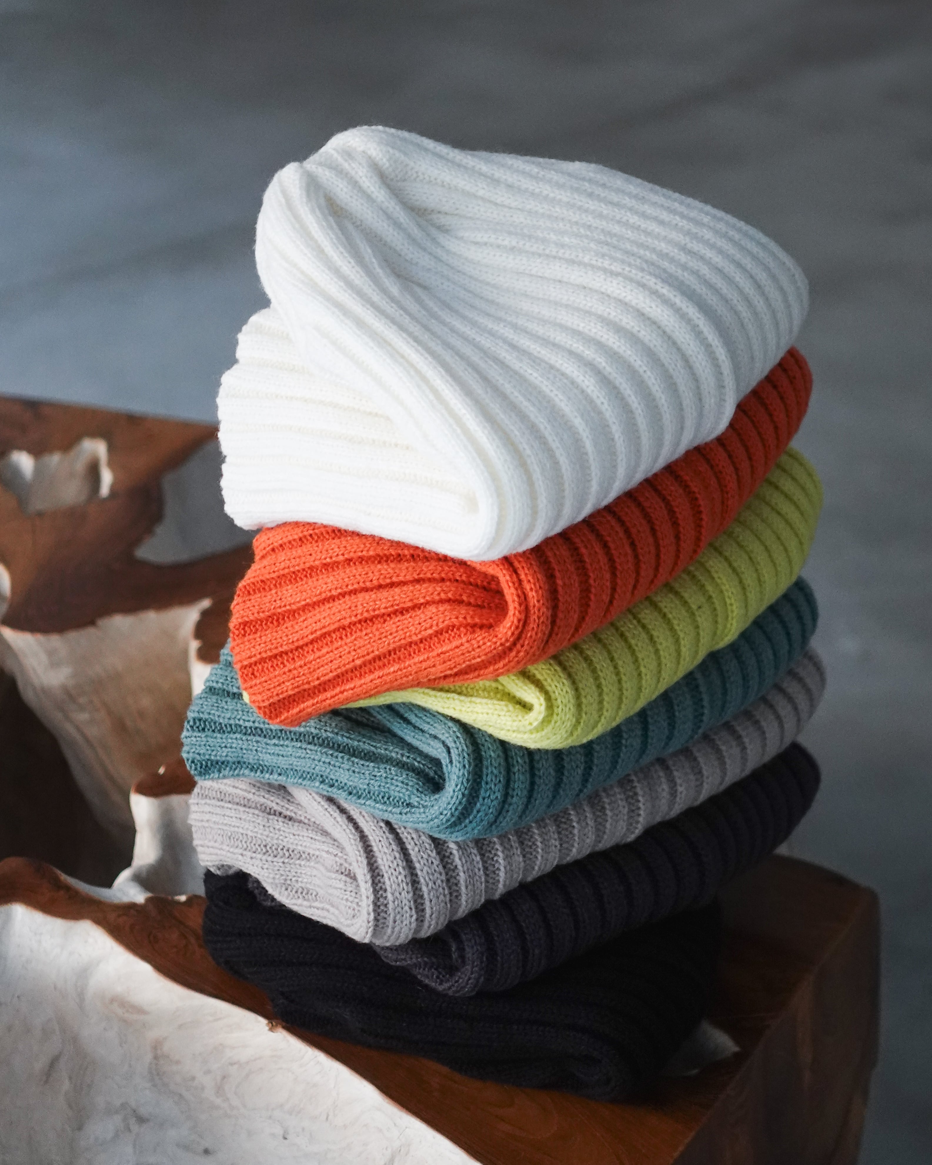 ソフトな肌触りのアクリルウールをリブ編みでシンプルに編み立て。