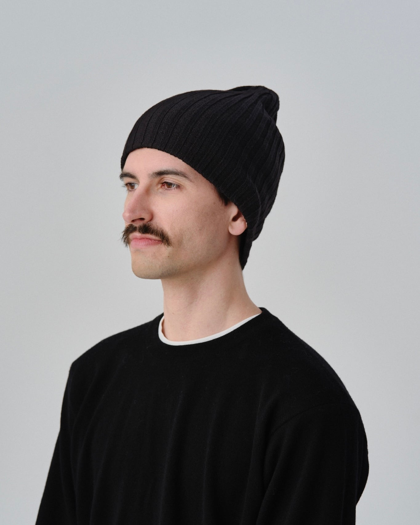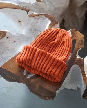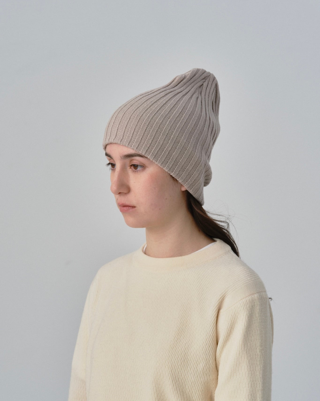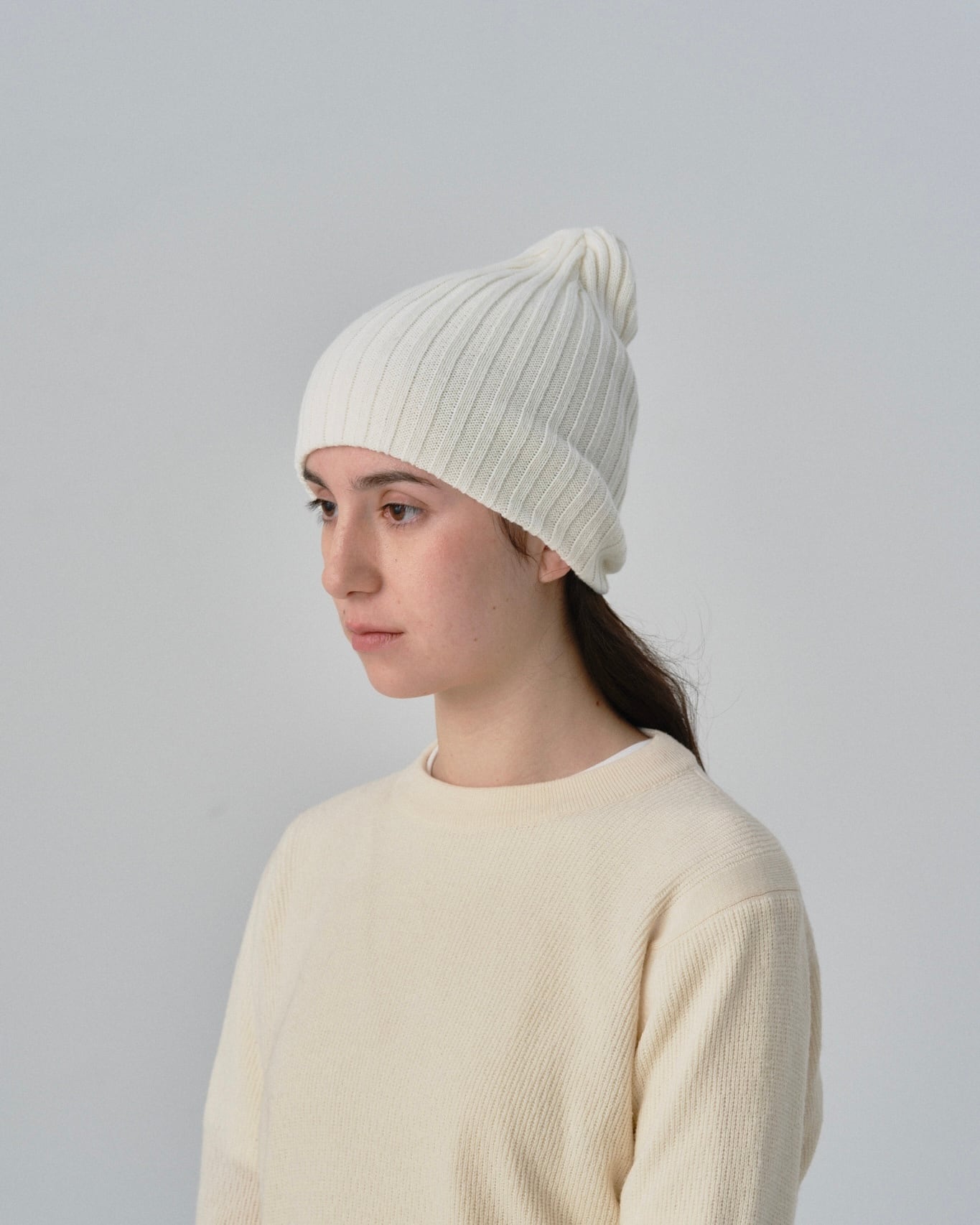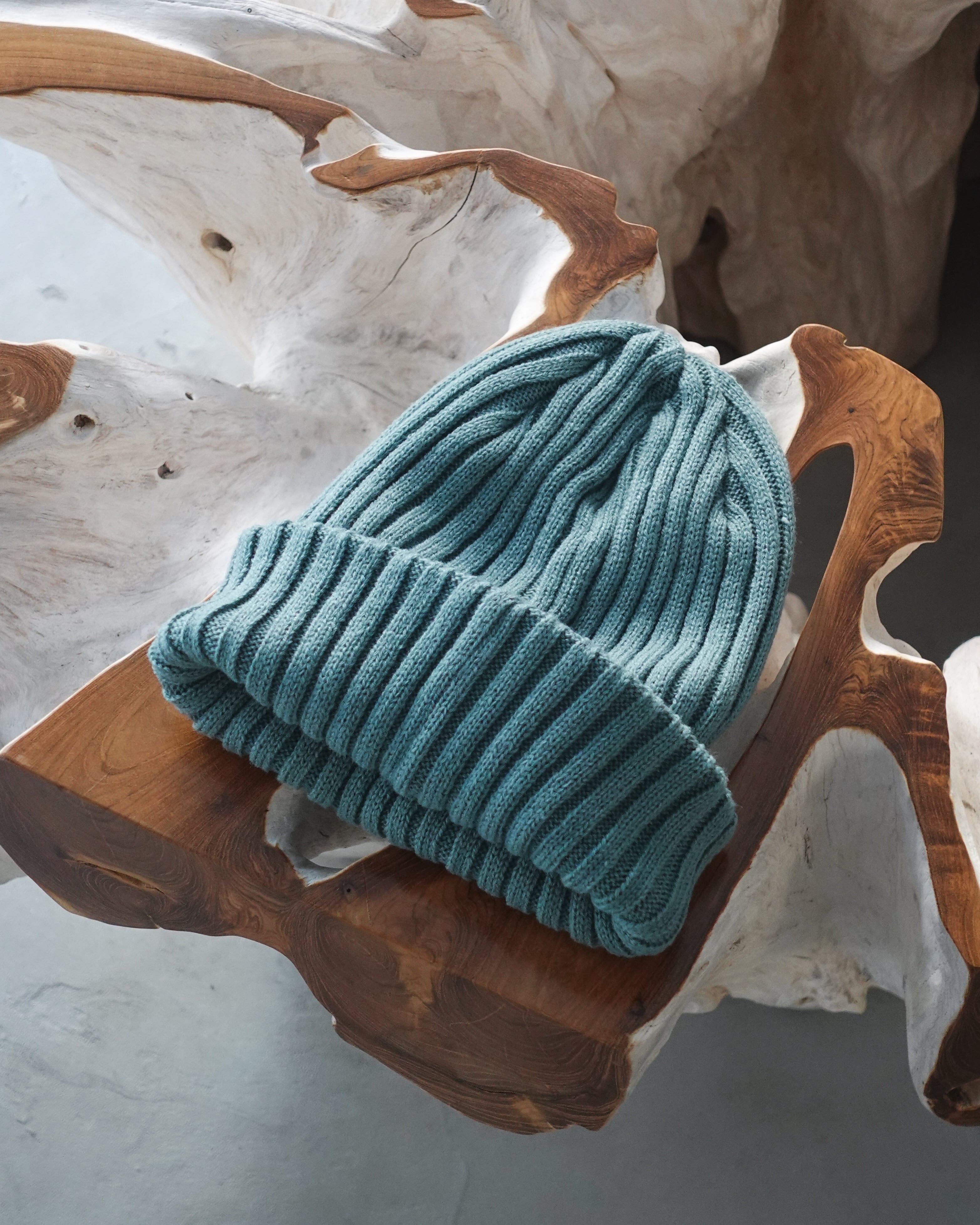 ソフトな肌触りのアクリルウールをリブ編みでシンプルに編み立て。