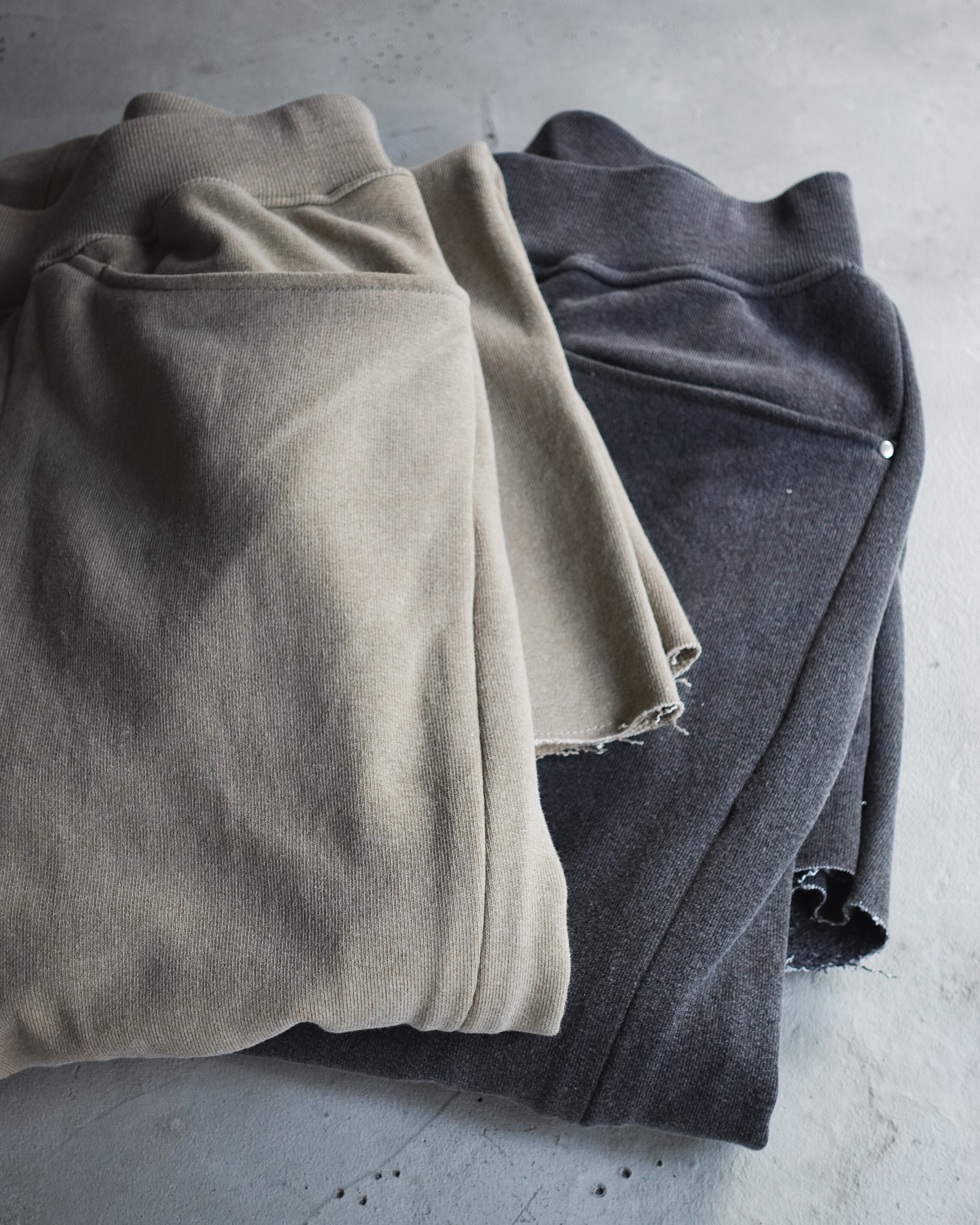 スラックスのディテールにスウェットパンツの抜け感が相まった逸品です。