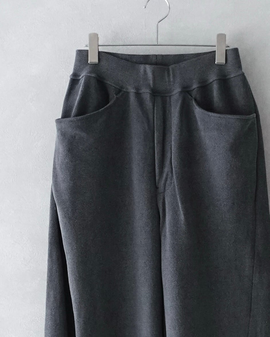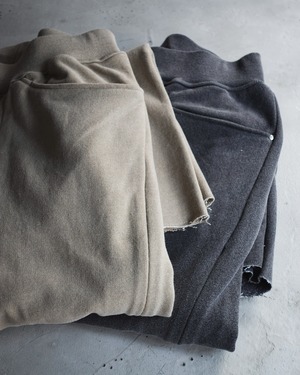 裾はカットオフ、オリジナルで編み立てたウエストリブはゴムで調整可能なイージー仕様。