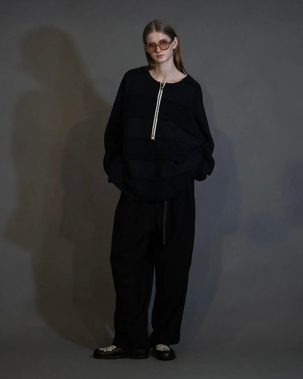 シャツ、ハイネック等、インナーを変えて頂く事で、長いシーズン対応してくれるプルオーバー。