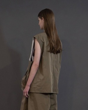 ベストでは珍しい、立体的でまるみがあるオーバーシルエットで、ジャケットやコートなどのアウターとのレイヤードスタイルもお薦めです。