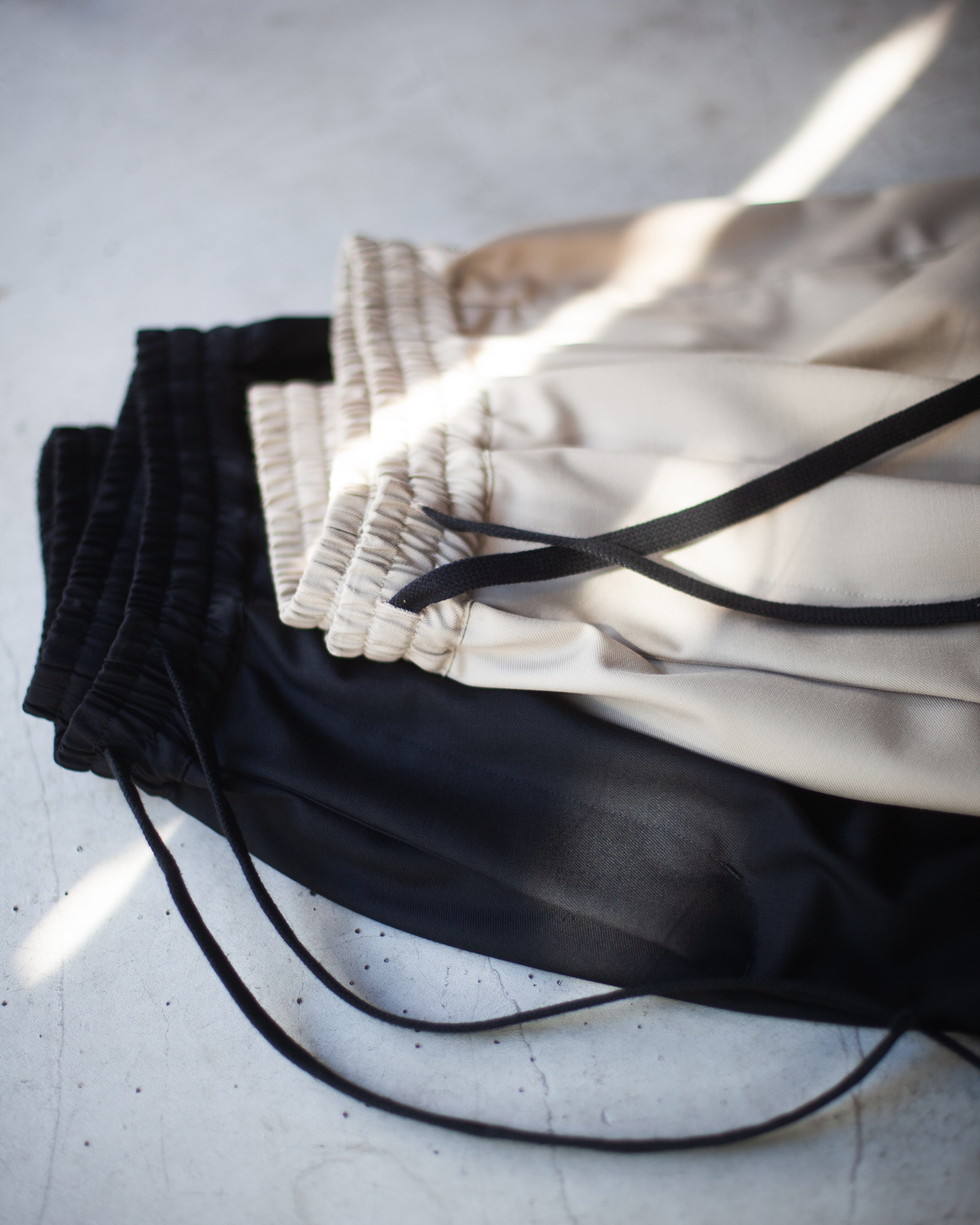 ウエストにはゴムが入っており、+サイズ調節可能な紐付きで、機能面にも良くとても扱いやすい1本です。