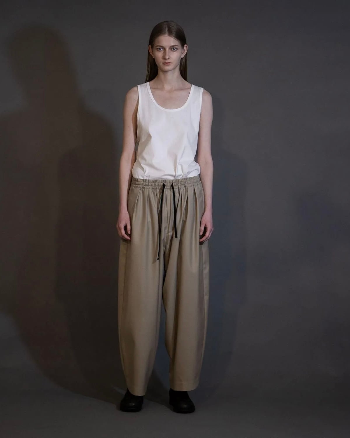 フロントにタックが入り、適度なテーパードが効いた丸みのあるシルエット。