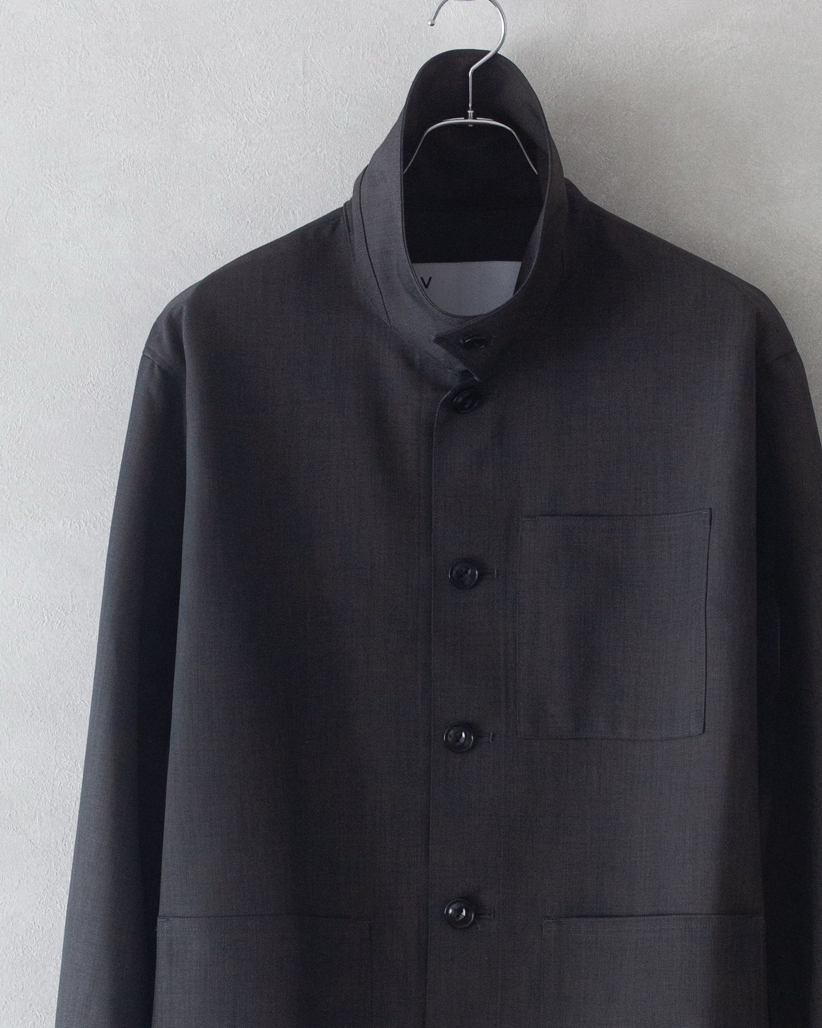 襟を立ててボタンを留め、スタンドネックのルックもお楽しみ頂けます。