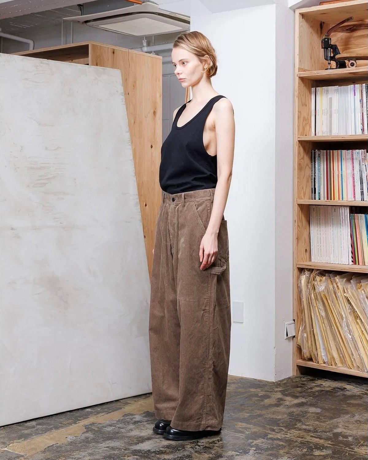 ワークパンツのディテールを盛り込みながら、腰からストレートに落ちるのが特徴的なワイドシルエット。