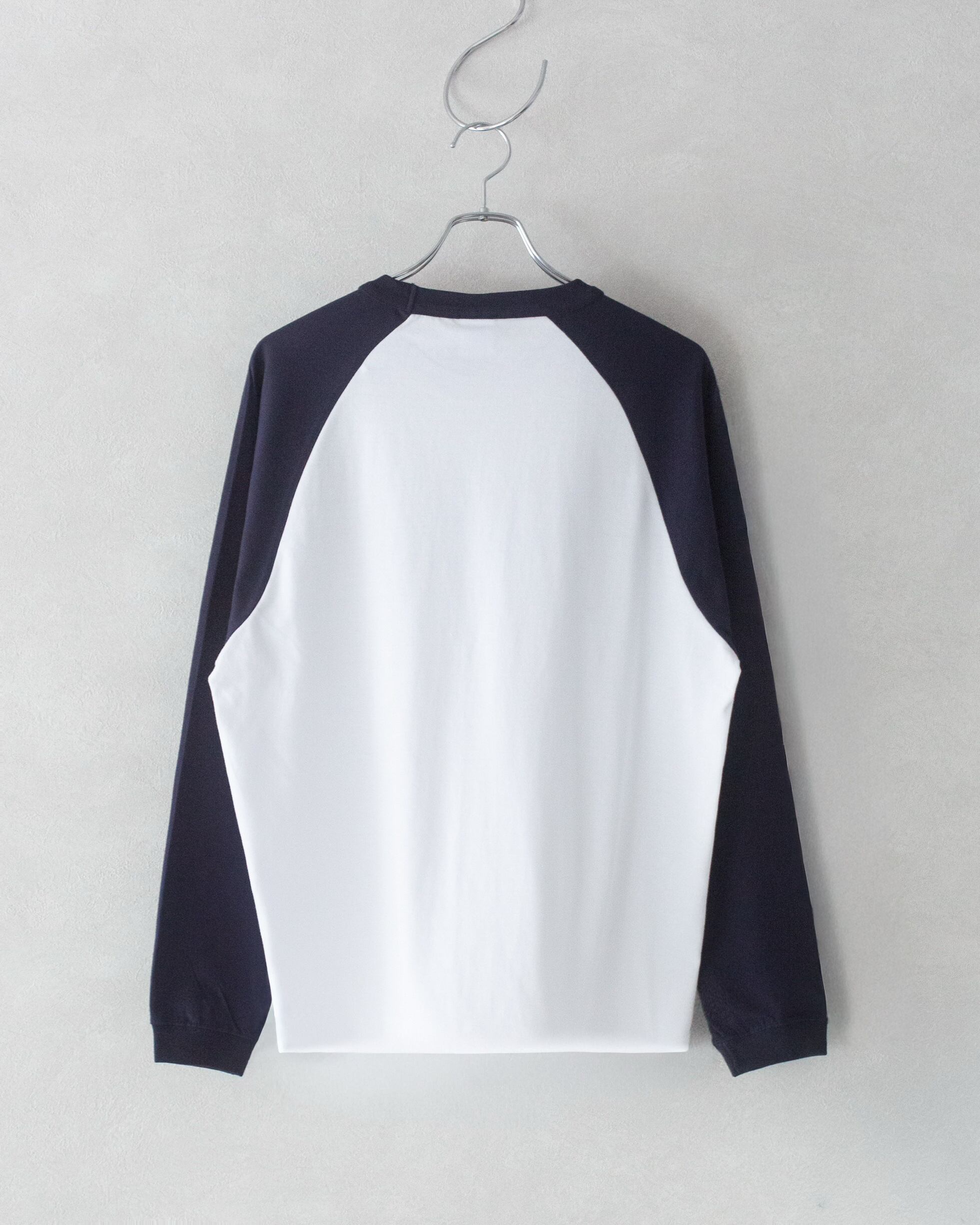 従来のラグランTのラウンド裾ではなく、スクエアのボックス型でシティ感を演出。