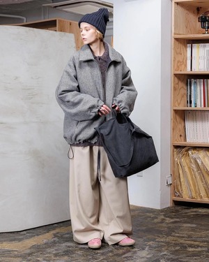 フロントはダブルジップ、袖と裾にはスピンドルを配し、様々なスタイリングが可能。