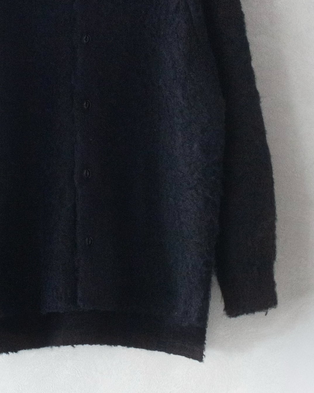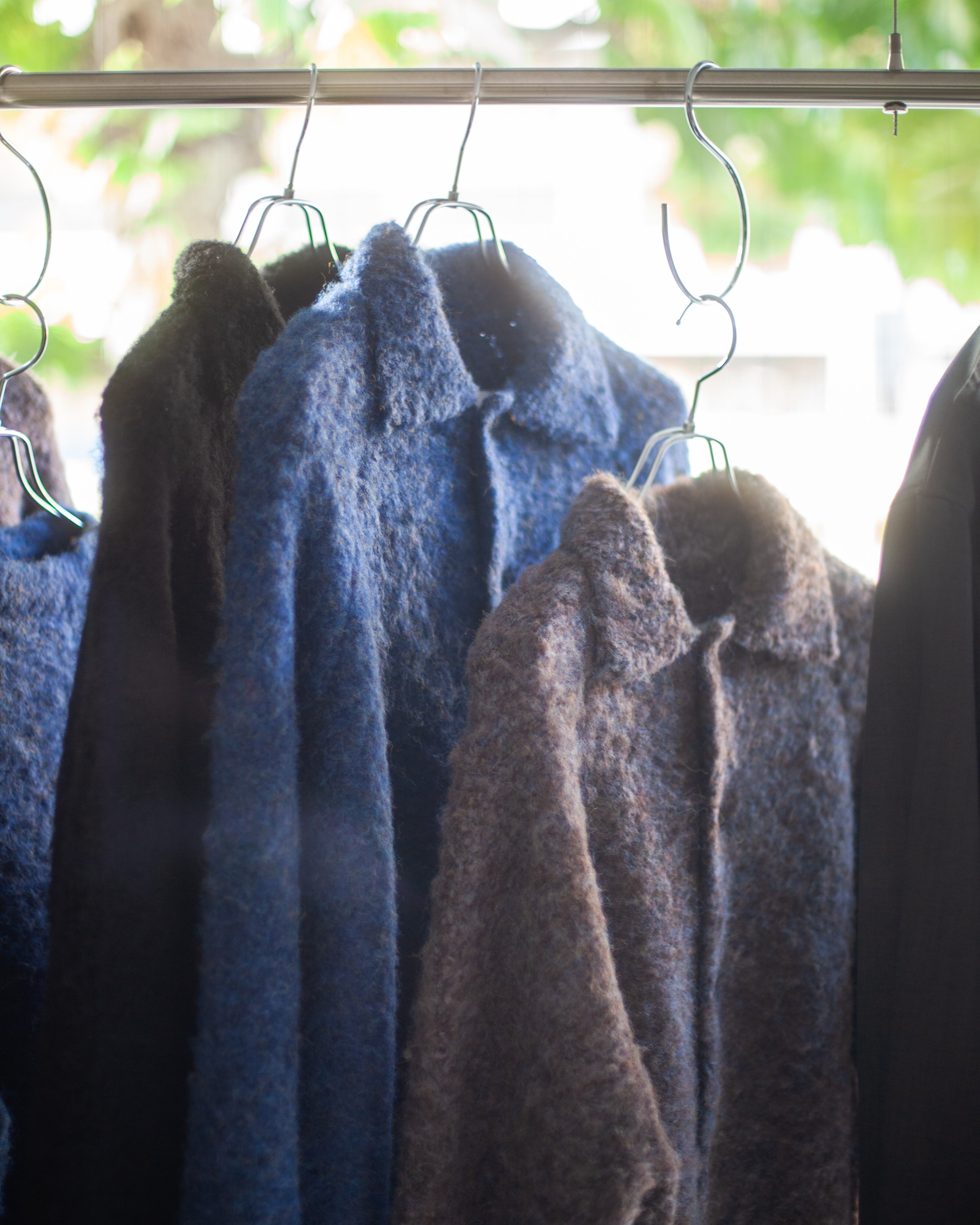 表面を棘のある植物のフラースチーゼルを用いた起毛機で、1枚1枚手作業でふんわりと仕上げられたニット素材です。