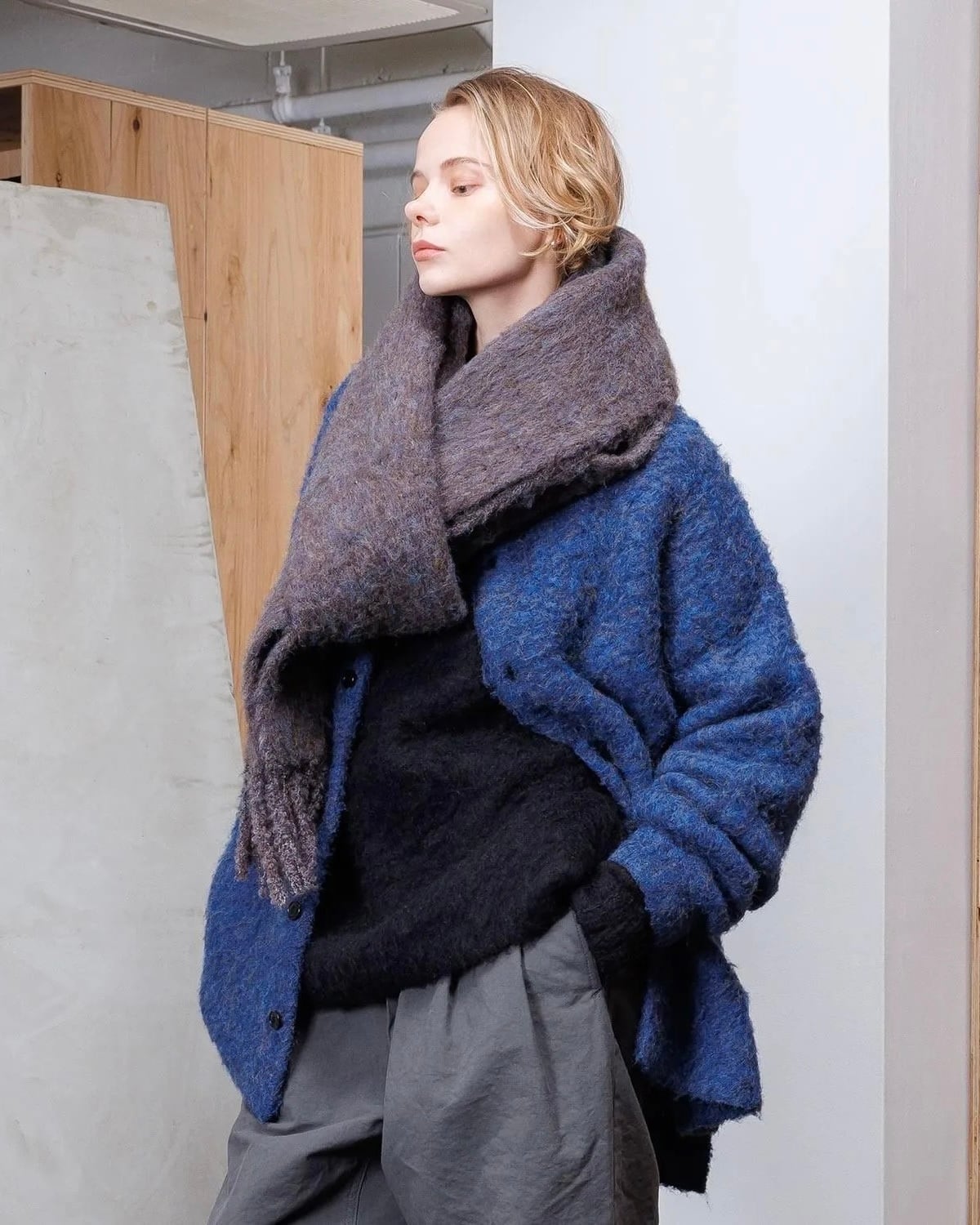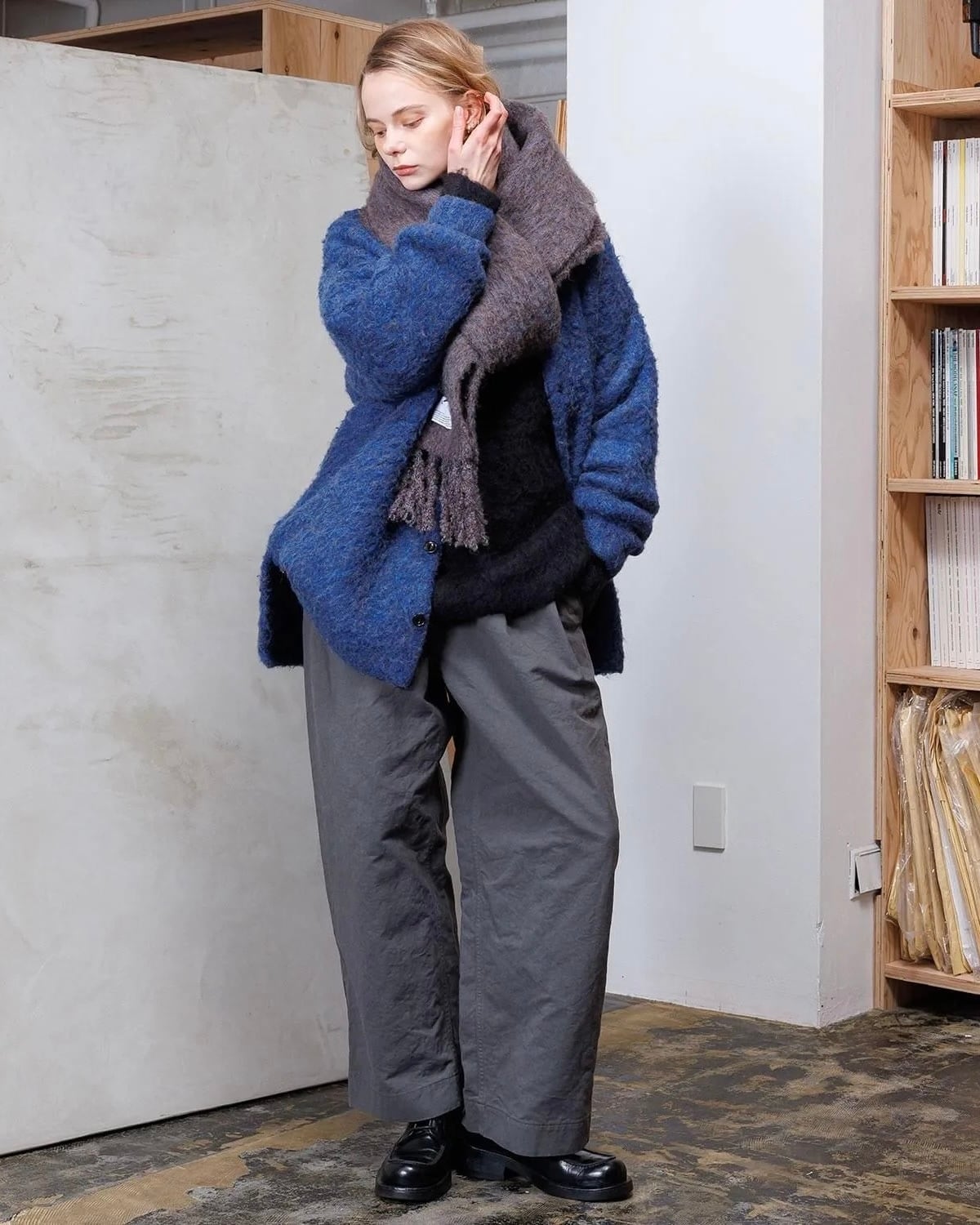 通常のニットよりも軽く、気になるチクチク感も無くストレスを感じない、着る枚数が増える秋冬のコーディネートの際に頼もしい逸品です。