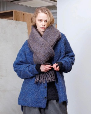 表面を棘のある植物のフラースチーゼルを用いた起毛機で、1枚1枚手作業でふんわりと仕上げられたニット素材です。