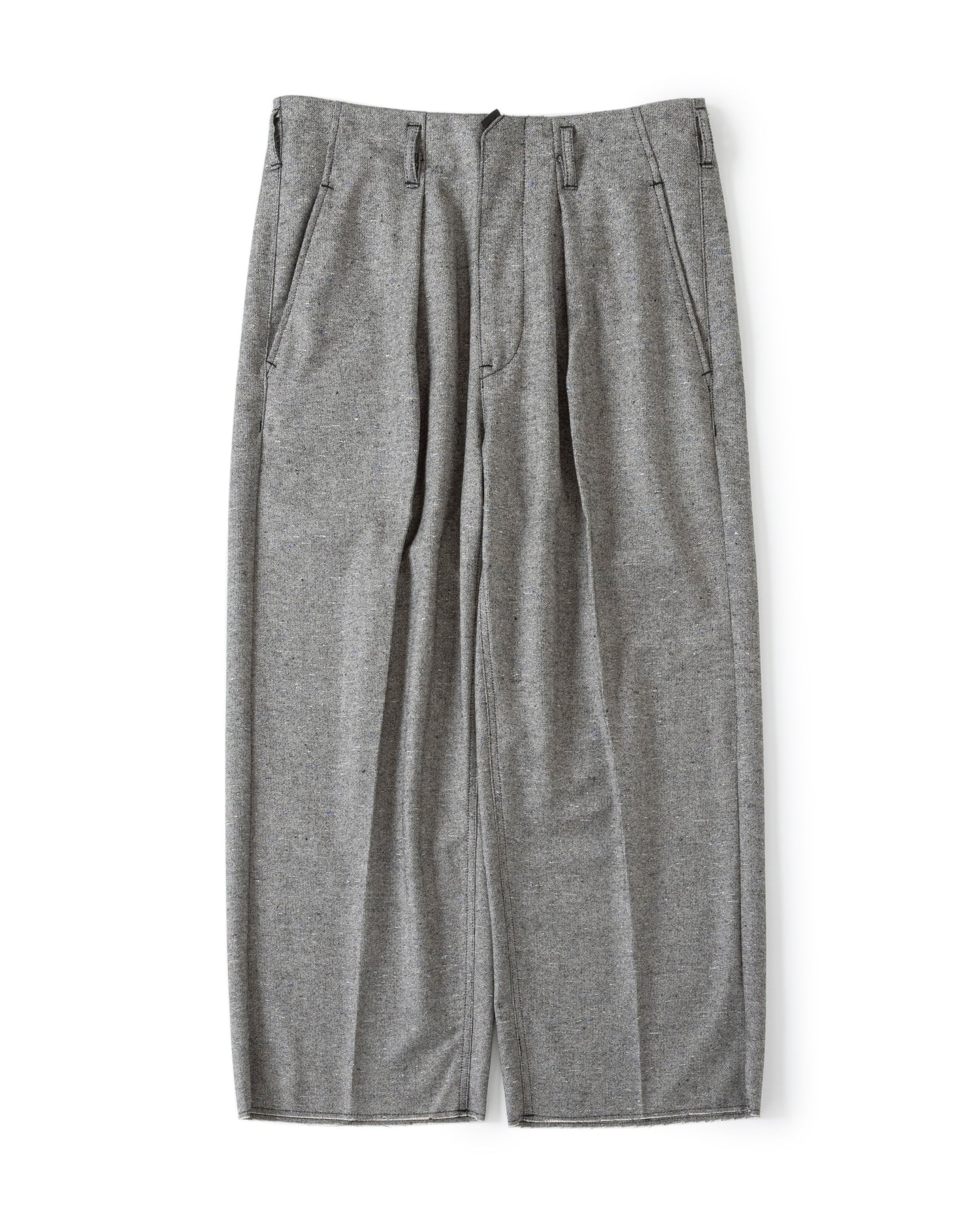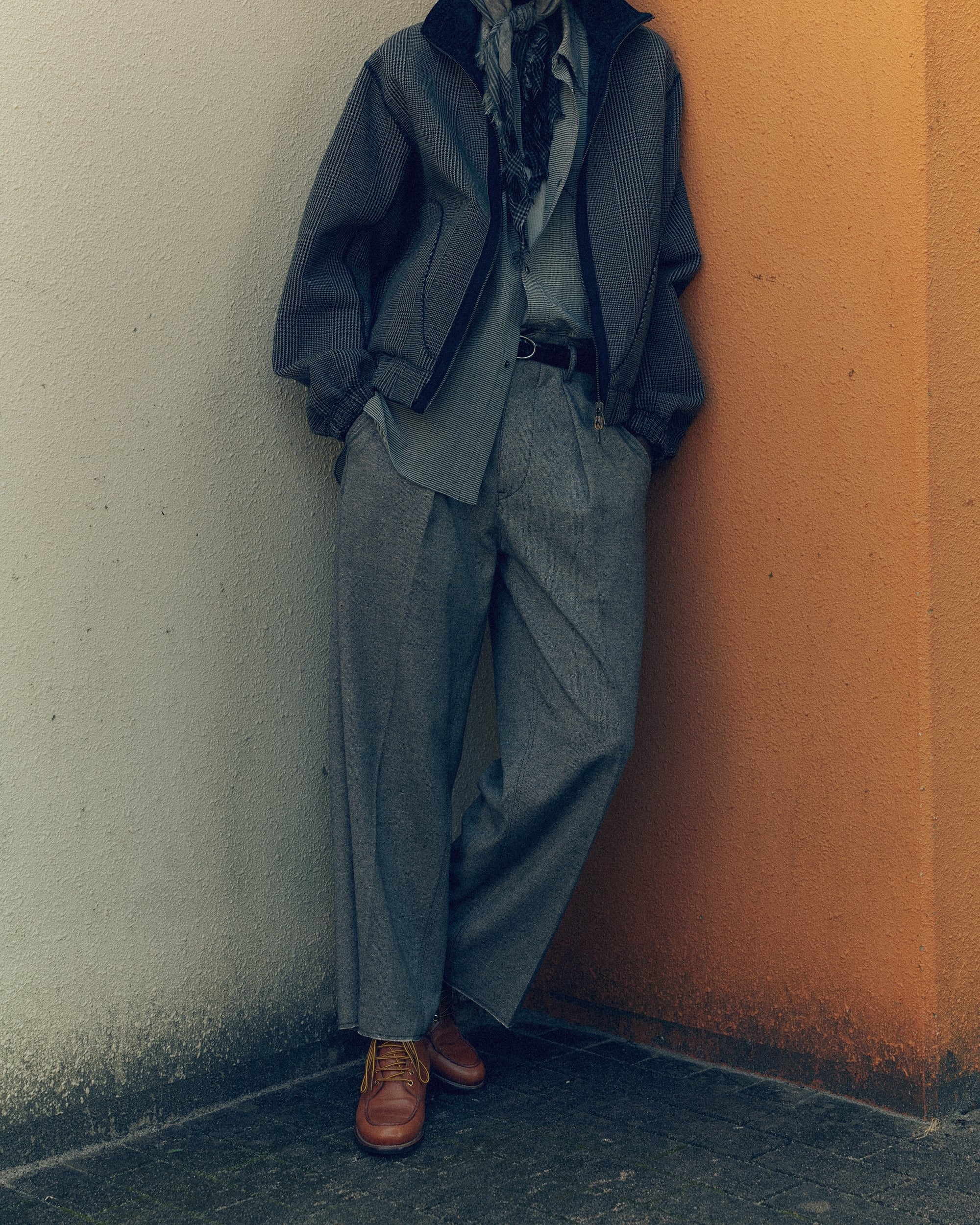 ラフな印象のホームスパンですが、レーヨン糸を使用する事で抑えの効いたシックな印象の生地感が特徴。