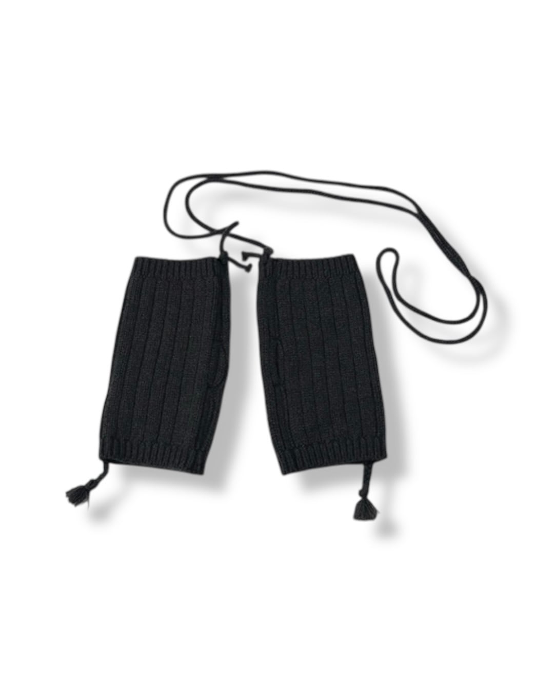 ミトンのようなレトロで可愛らしい印象のひも付きアームウォーマー。