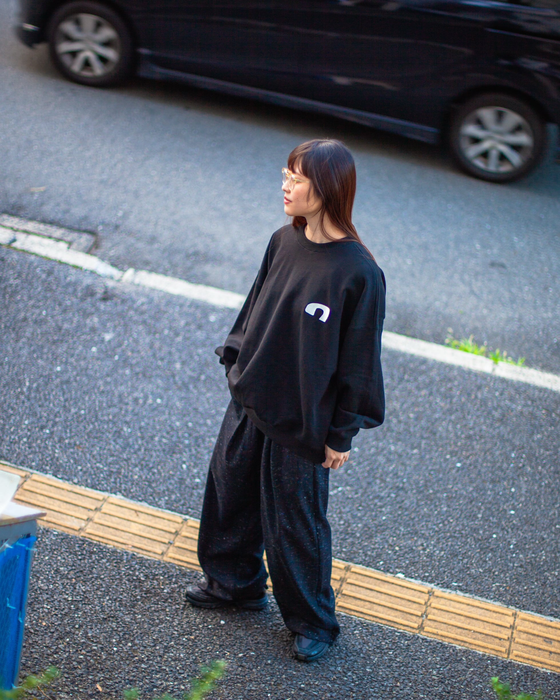 広い身幅に、ドロップショルダーからの袖の溜まりがリラックス感を演出してくれる、オーバーシルエット。