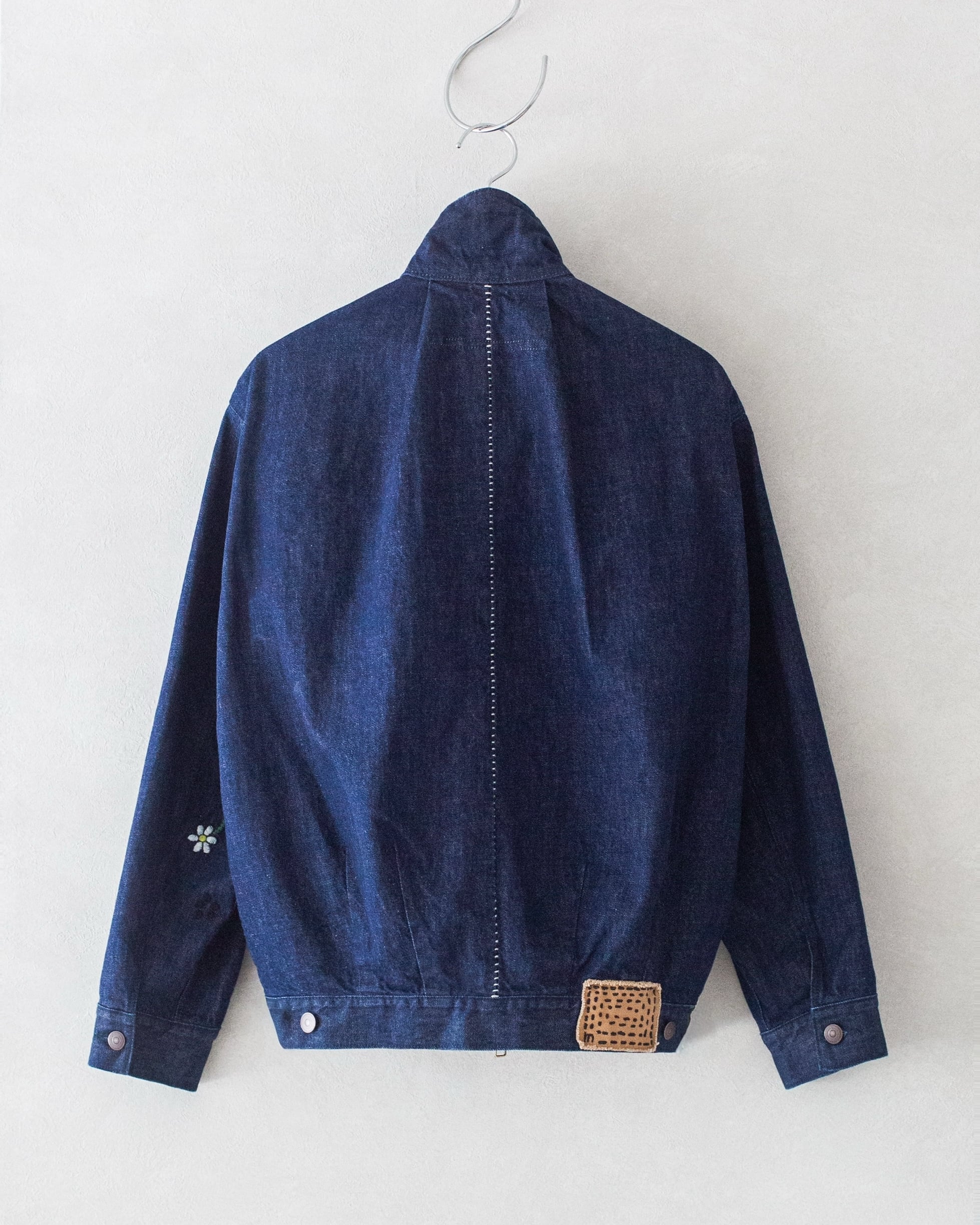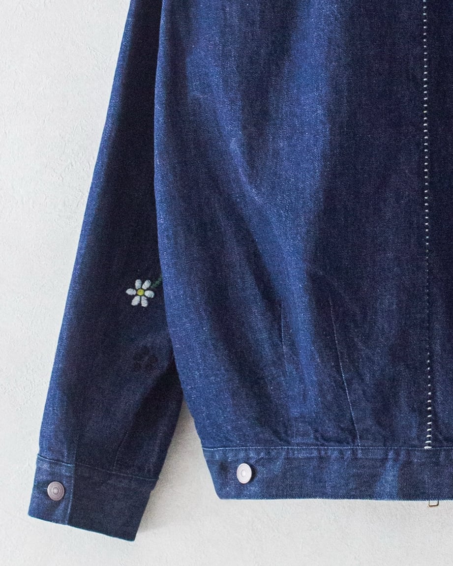 左袖には、カスミソウをイメージした手刺繡が施され、無骨さを抑えつつワンポイントのアクセントに。