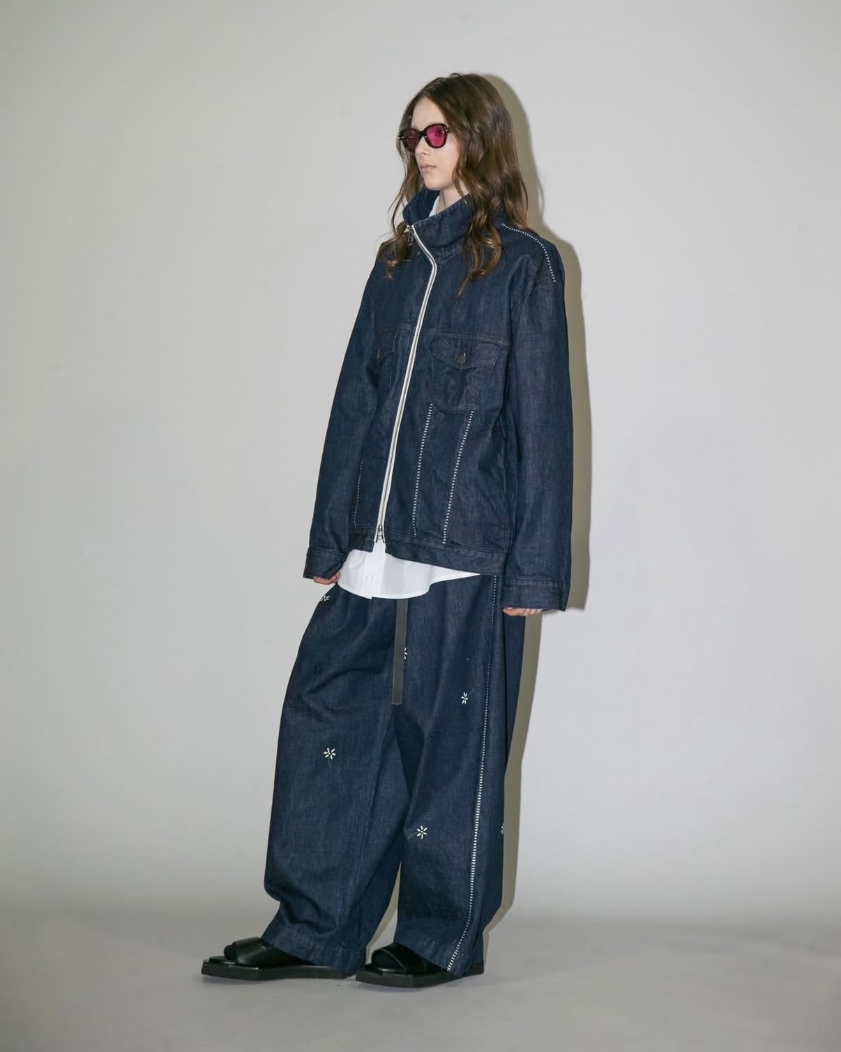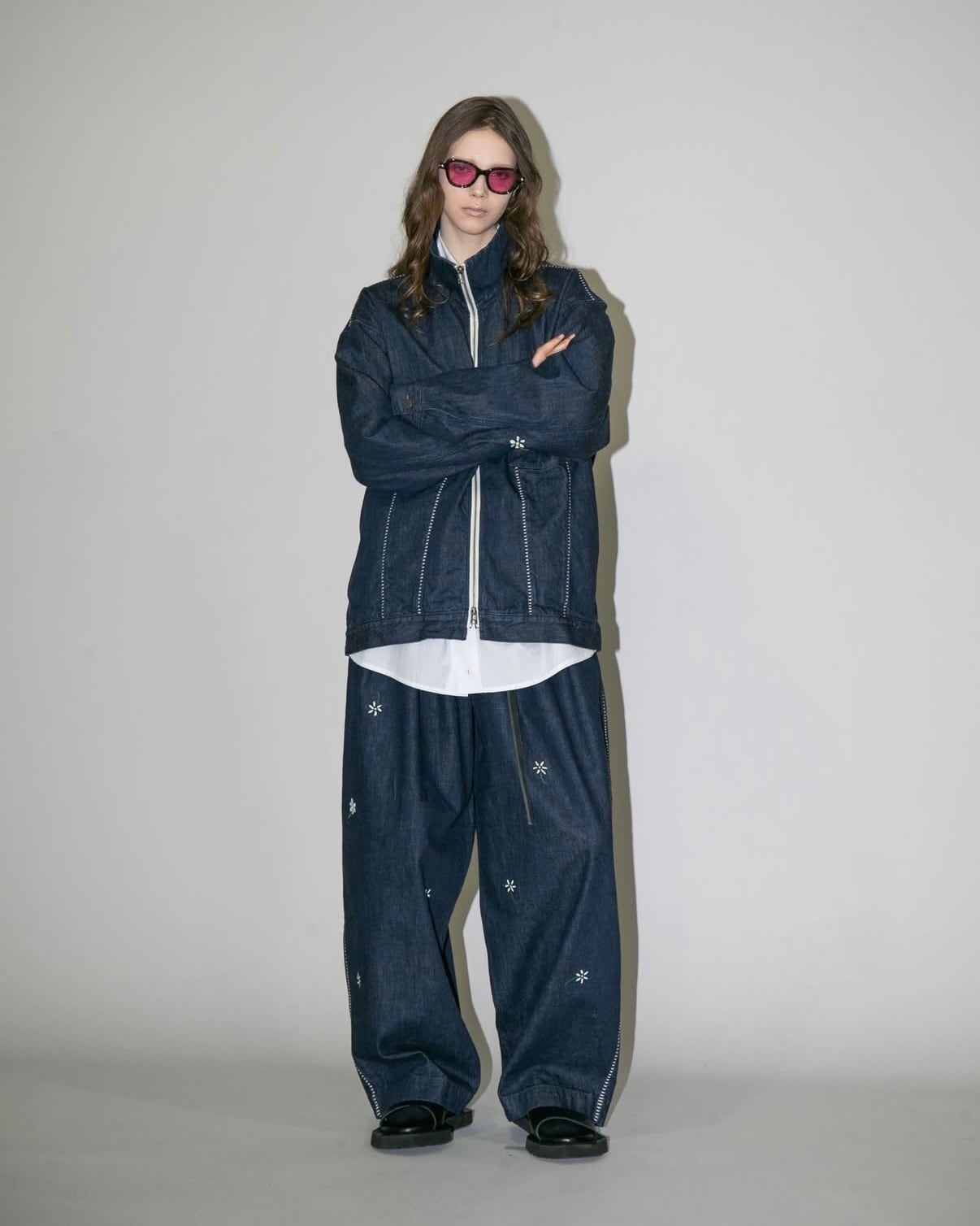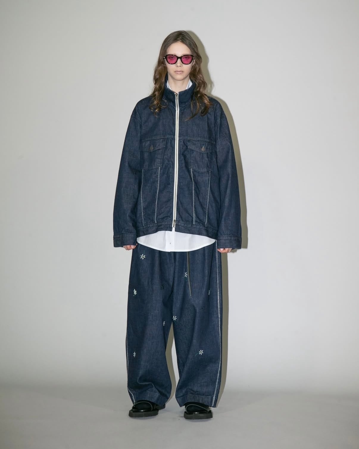同素材で展開されているデニムジャケットとのセットアップで、より洗礼されたモードスタイルをお楽しみ頂ける逸品です。