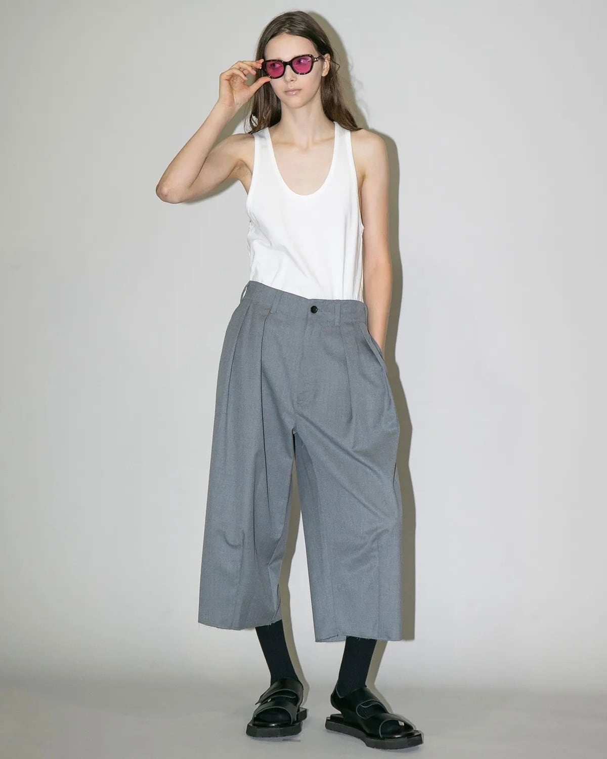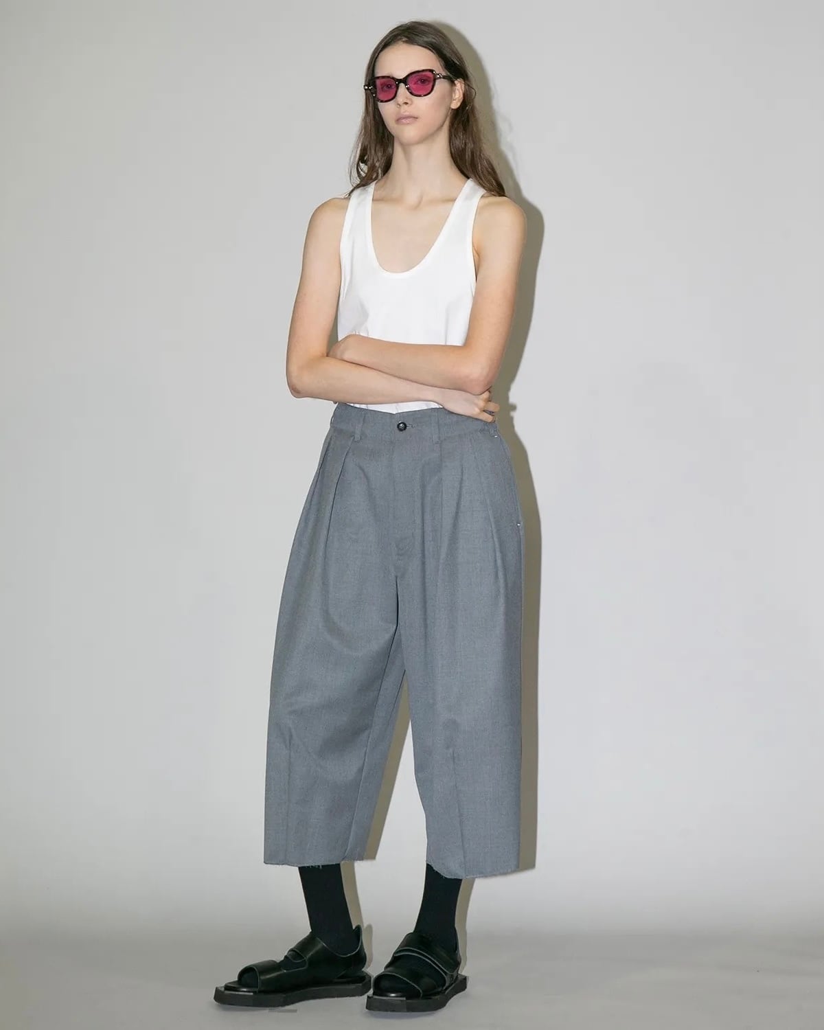 アンクル丈でカットオフされたディテールが絶妙なデザインバランスに。