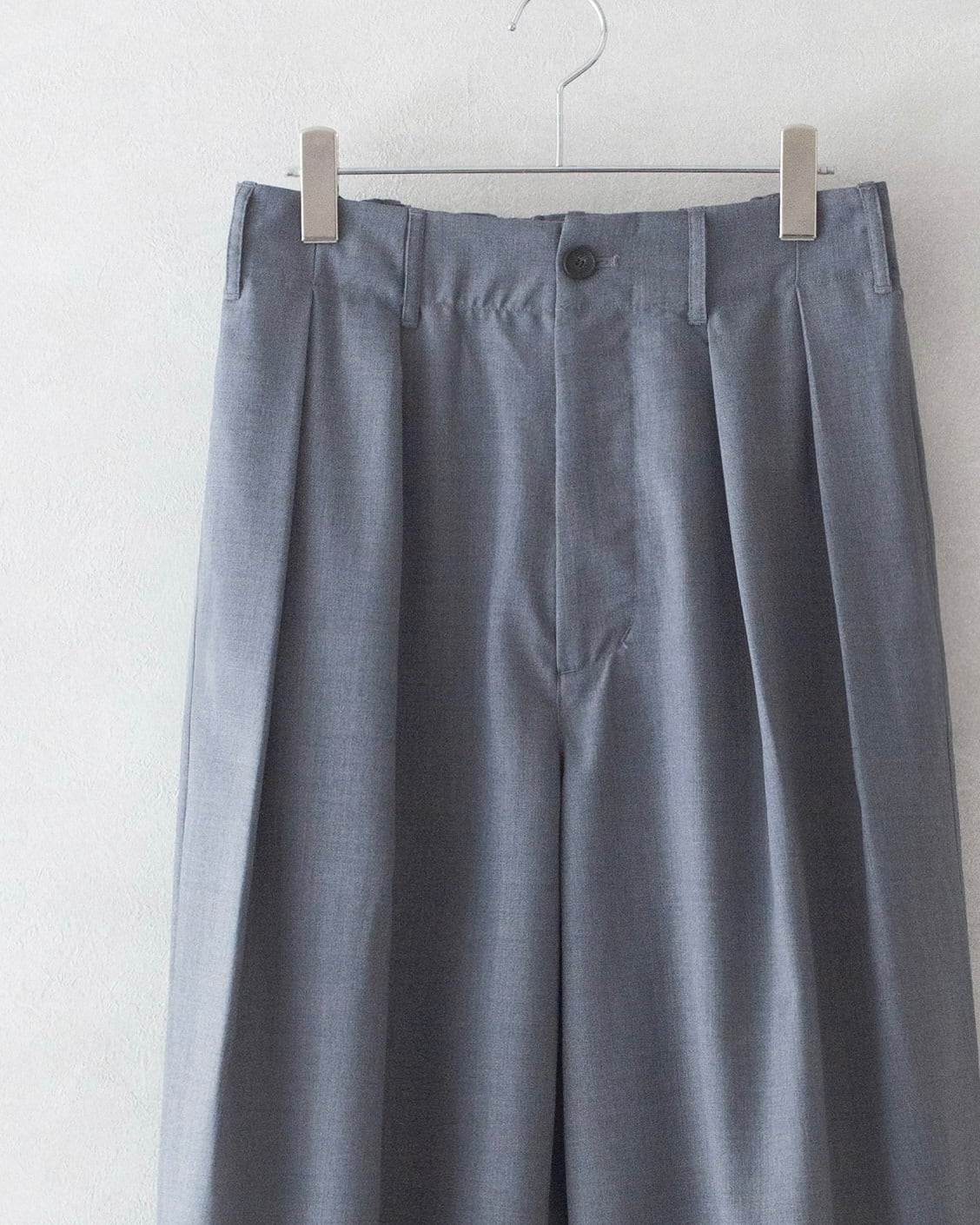 シルエットは、腰元に2タックを設けたワイドストレート。