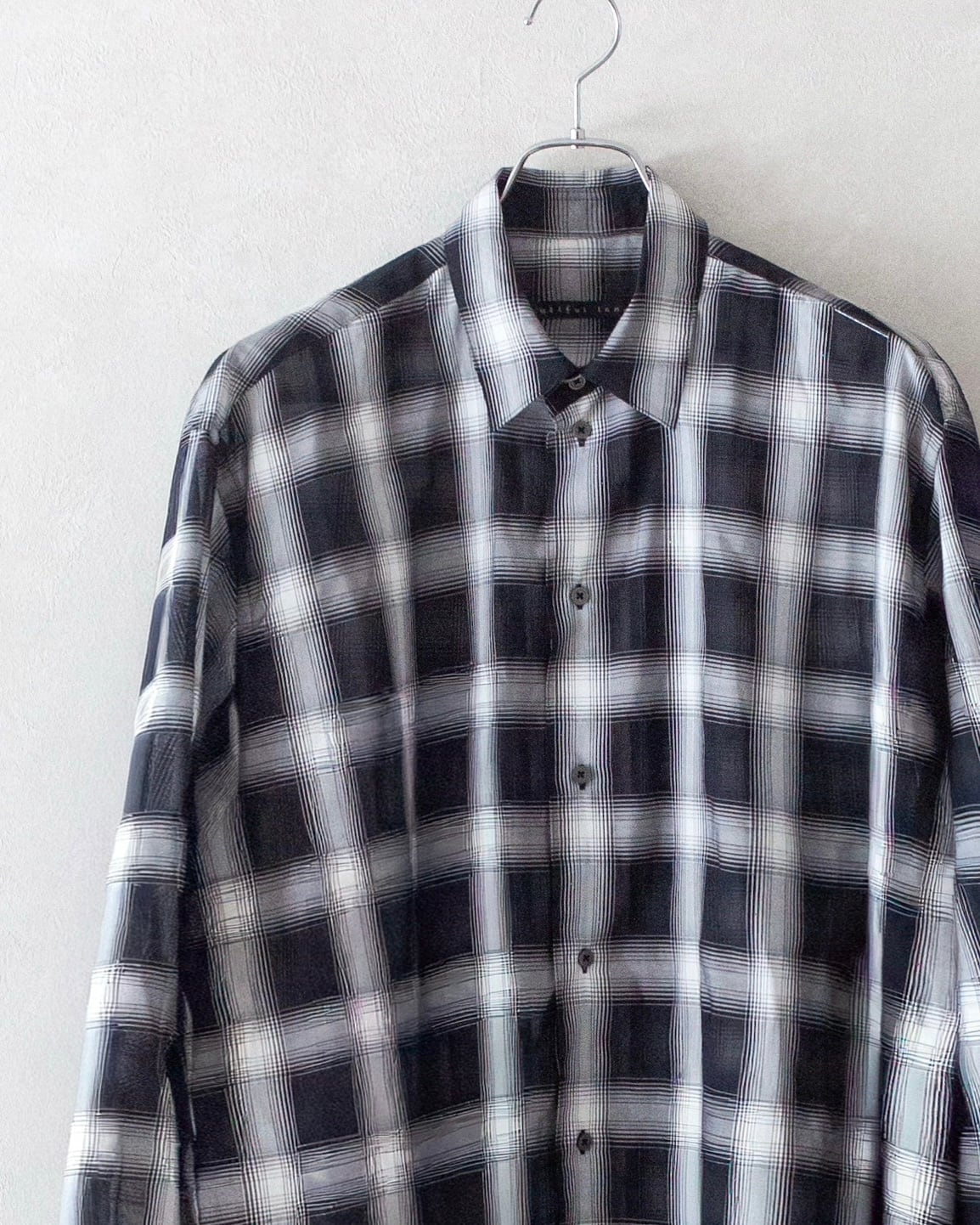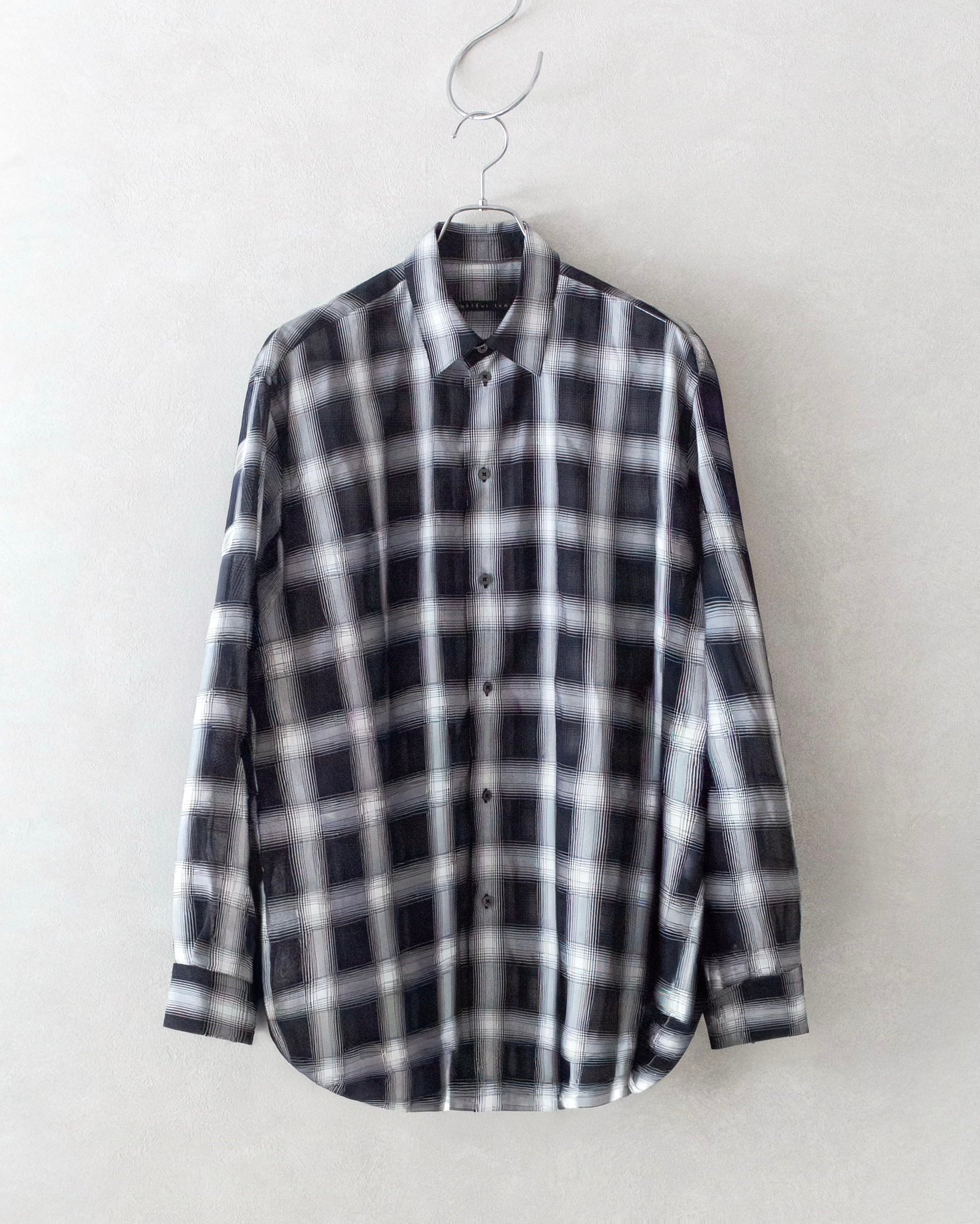 シアー素材特有の、透け感・立体感のある表情が、他に類を見ないチェック柄に仕上げられています。