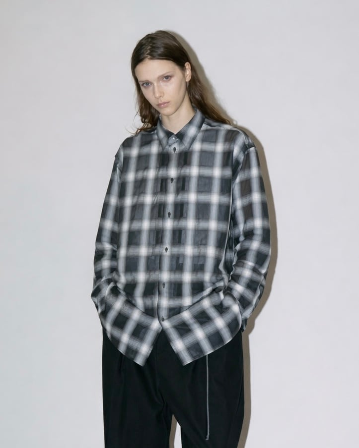 独自のシズルチェックのデザインでスタイリングを彩るオーバーサイズシャツ。