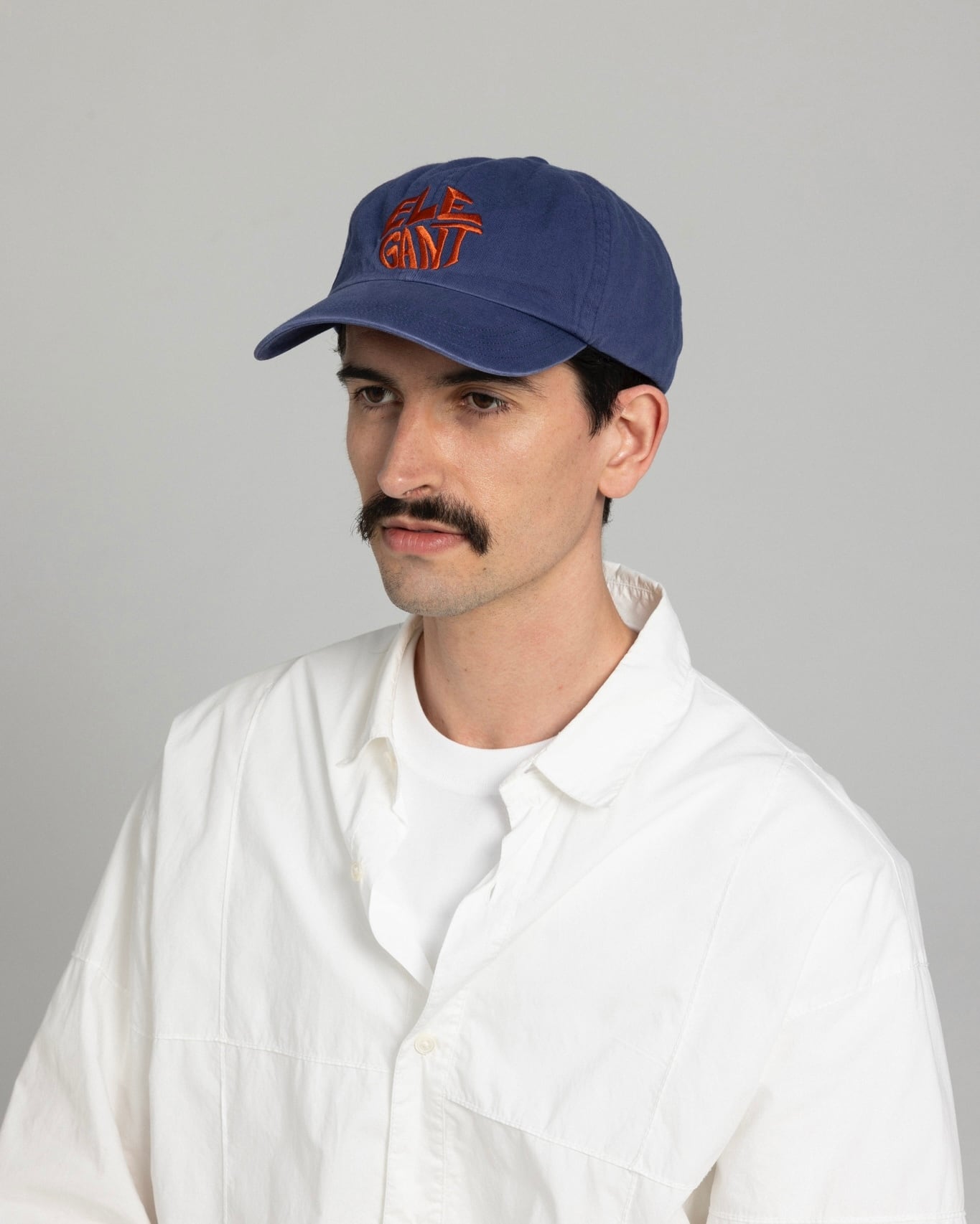 印象の異なる手書きのロゴ刺繍がポイントのベースボールキャップ。
