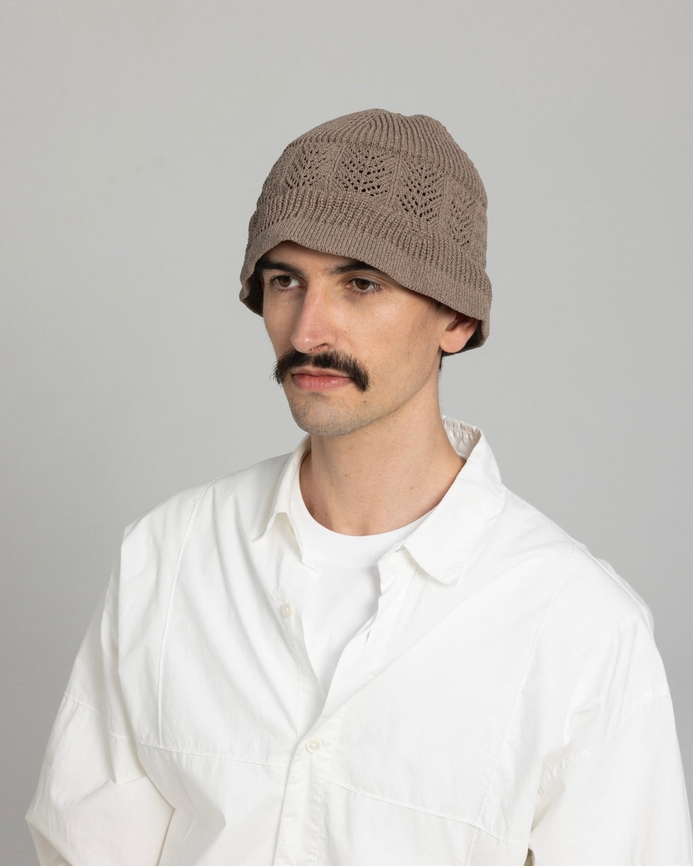 レースのような透け感を持つ編地の切り替えが、さりげなくスタイルを彩ってくれるニットハット。