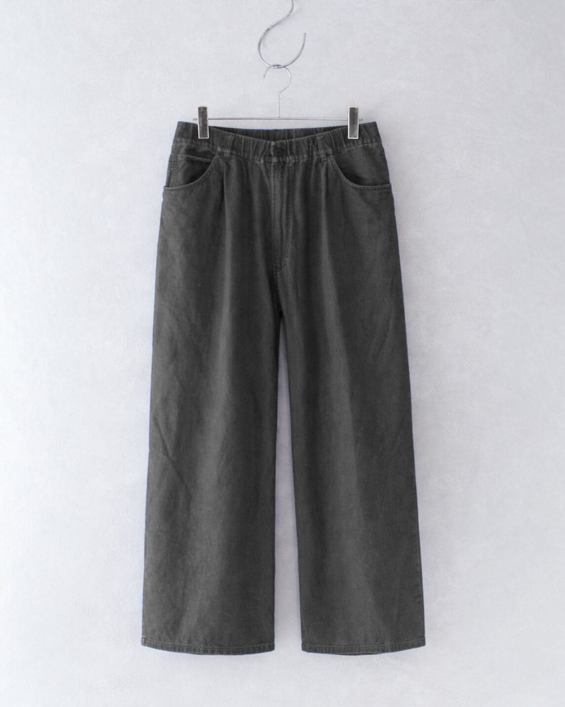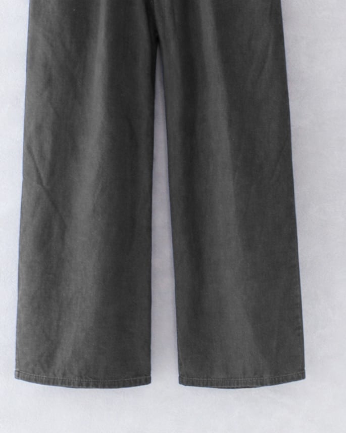 フロントタックのソフトにテーパードが効いているワイドシルエット。
