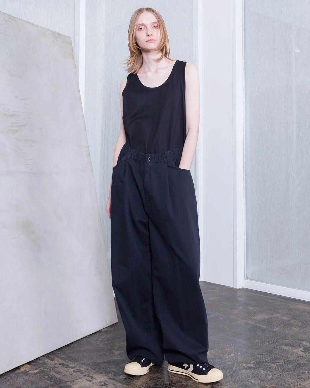 フロントタックのソフトな落ち感が魅力のワイドシルエット。