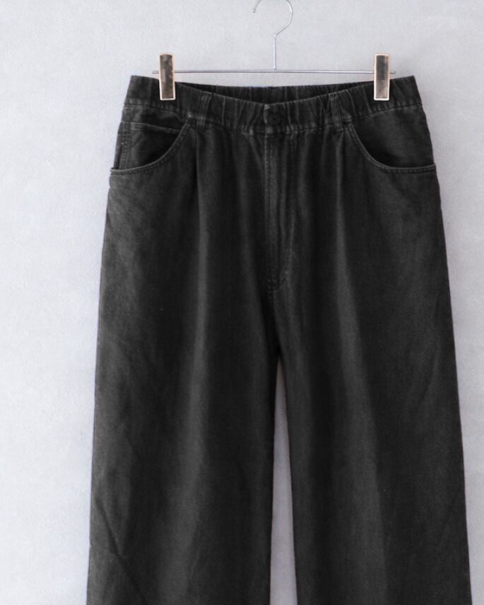フロントタックのソフトにテーパードが効いているワイドシルエット。