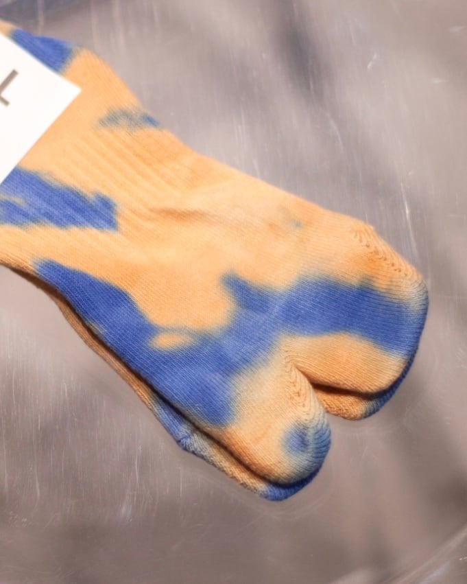 1足ずつ職人の手作業によるタイダイ染めにより、スタイリングのアクセントになる1足です。