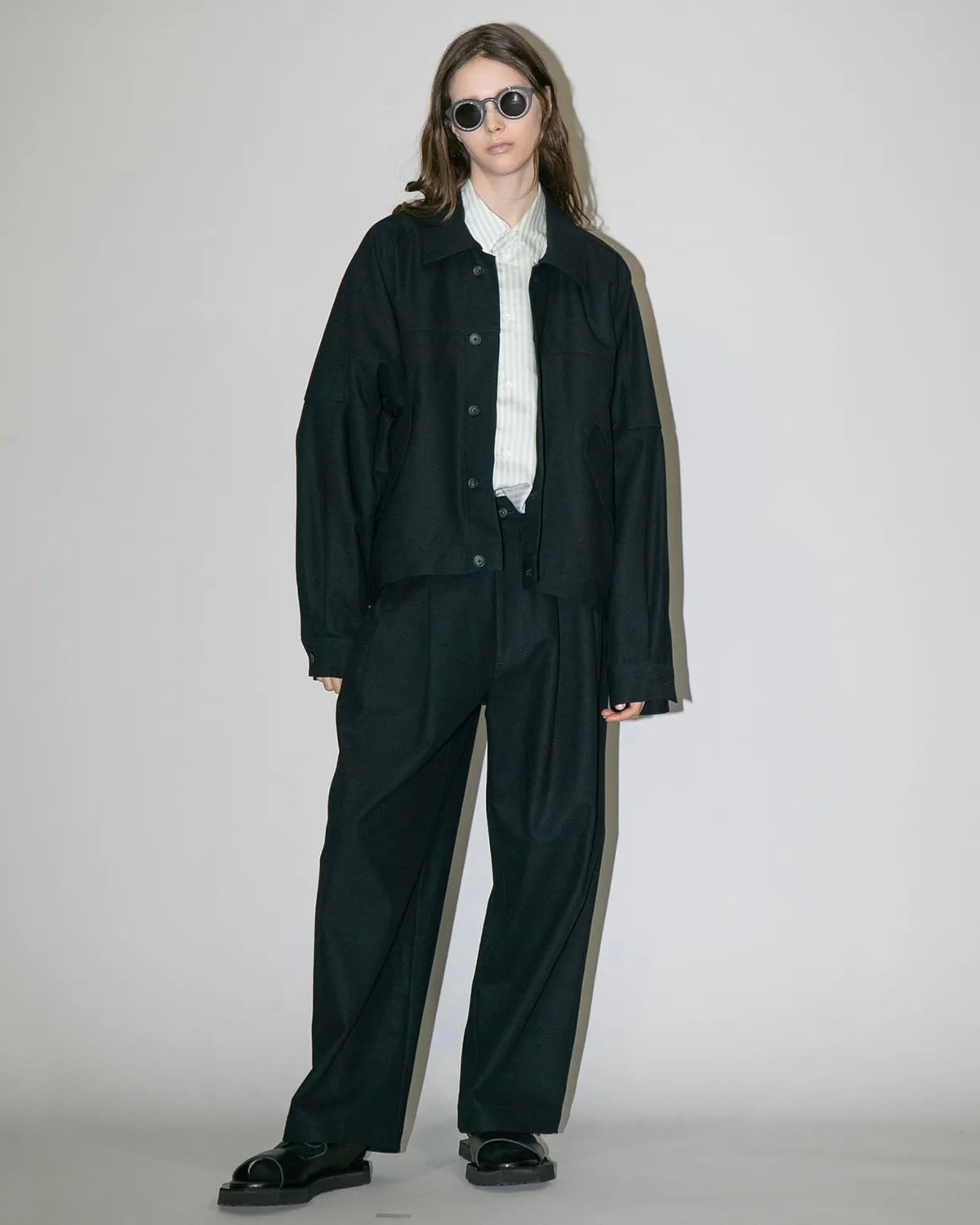 同素材で展開されているジャケットとのセットアップで、より洗礼されたモードスタイルをお楽しみ頂ける逸品です。