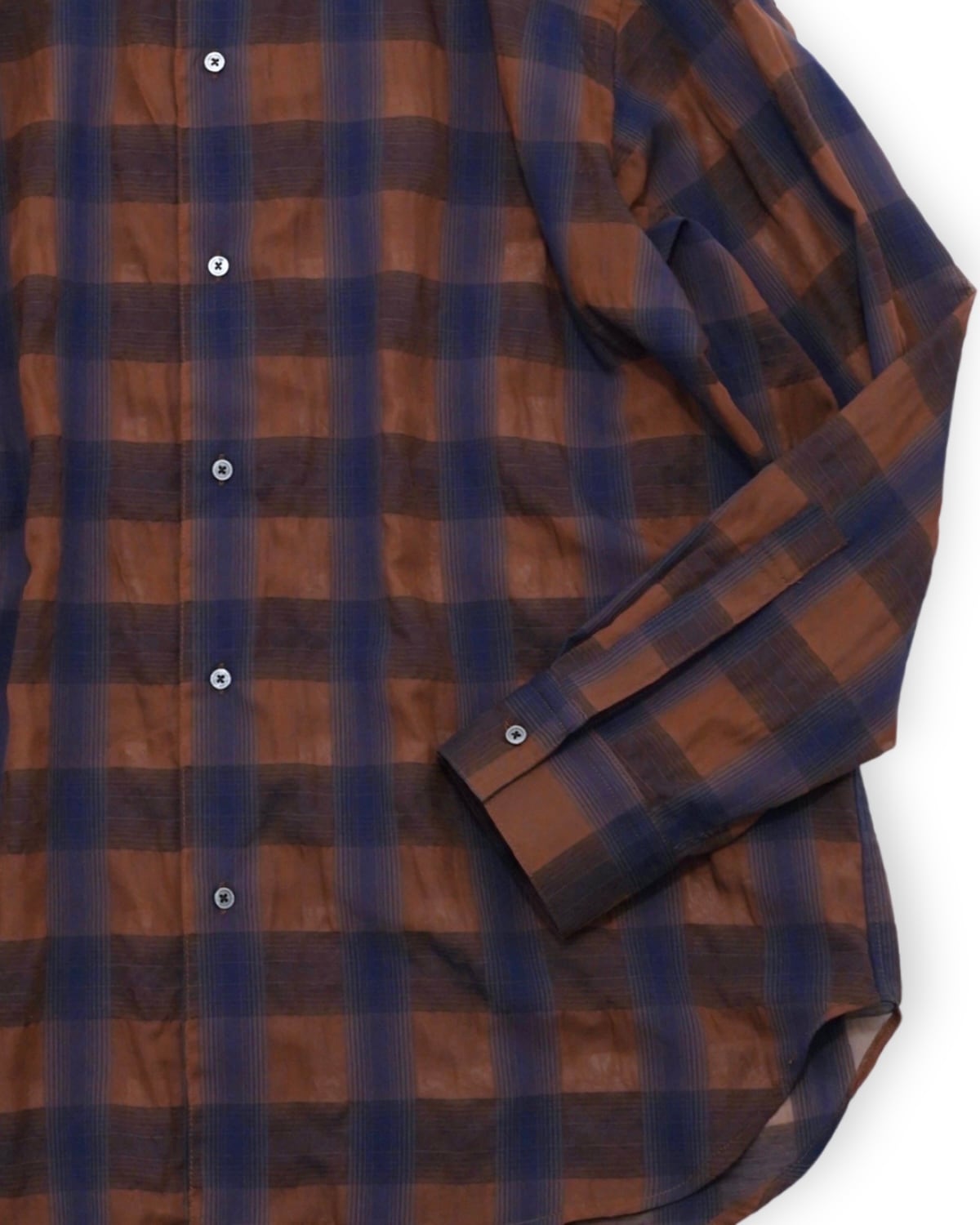 シアー素材特有の、透け感・立体感のある表情が、他に類を見ないチェック柄に仕上げられています。