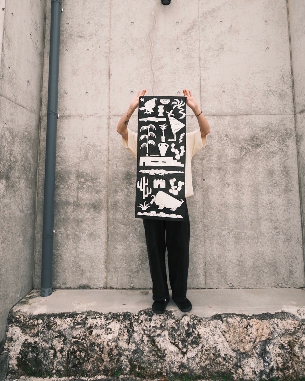 ポップでグラフィカルな(shape)の組み合わせによる視覚表現をテーマに掲げ、人や植物、風景等のモチーフを平面や立体に落とし込む。