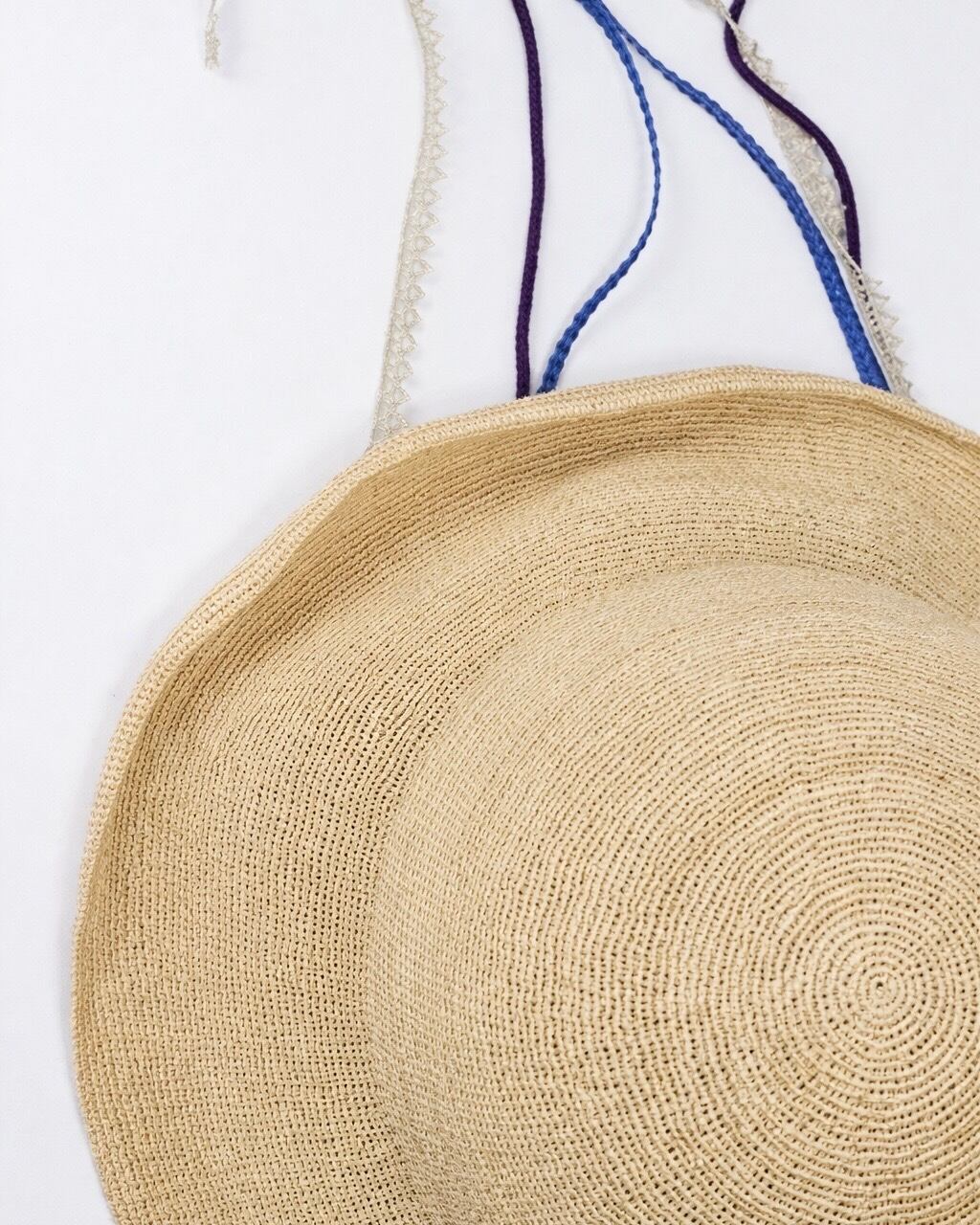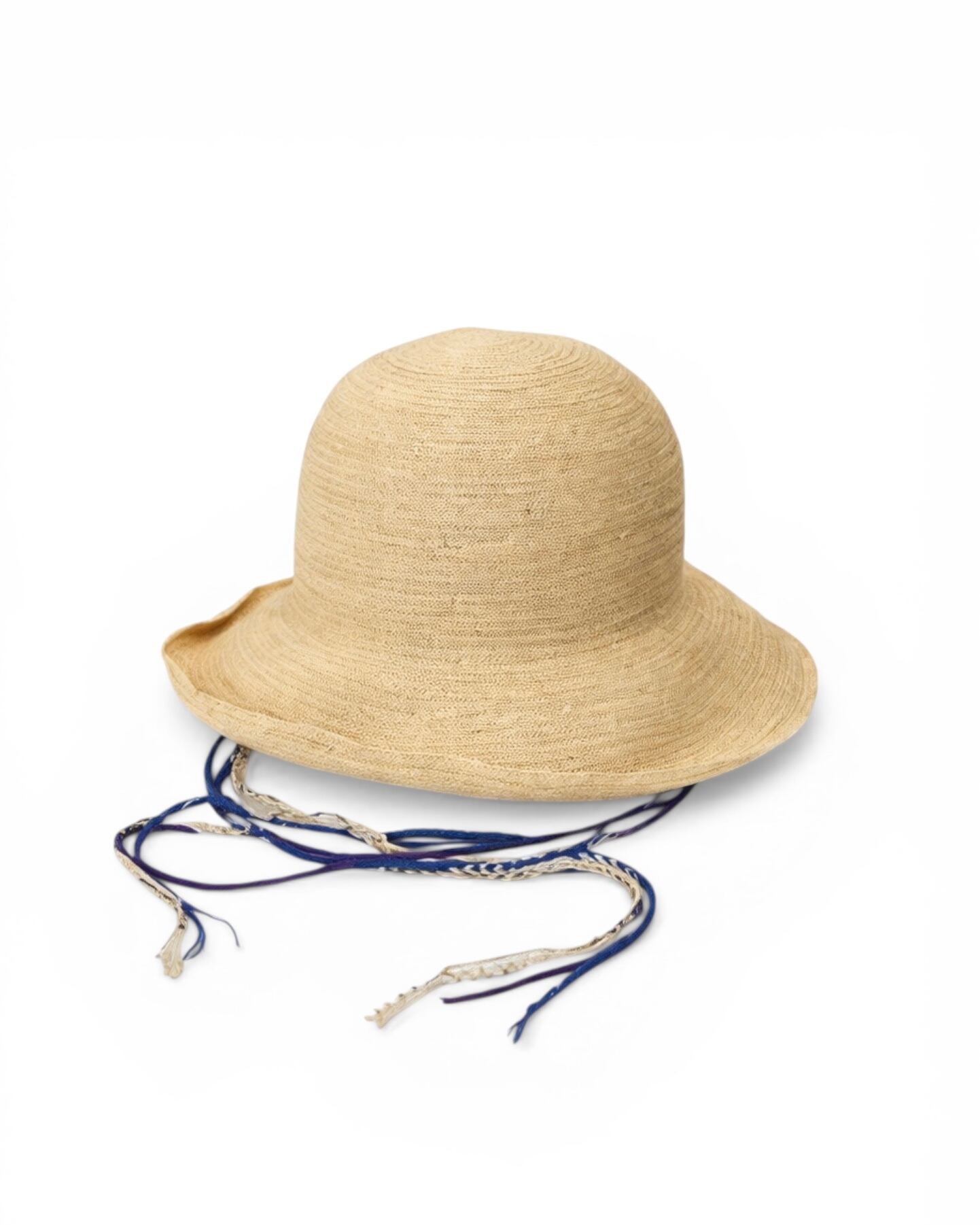 細いラフィア(椰子の葉)を使って丁寧に編み上げた、コマ編みのラフィアハット。