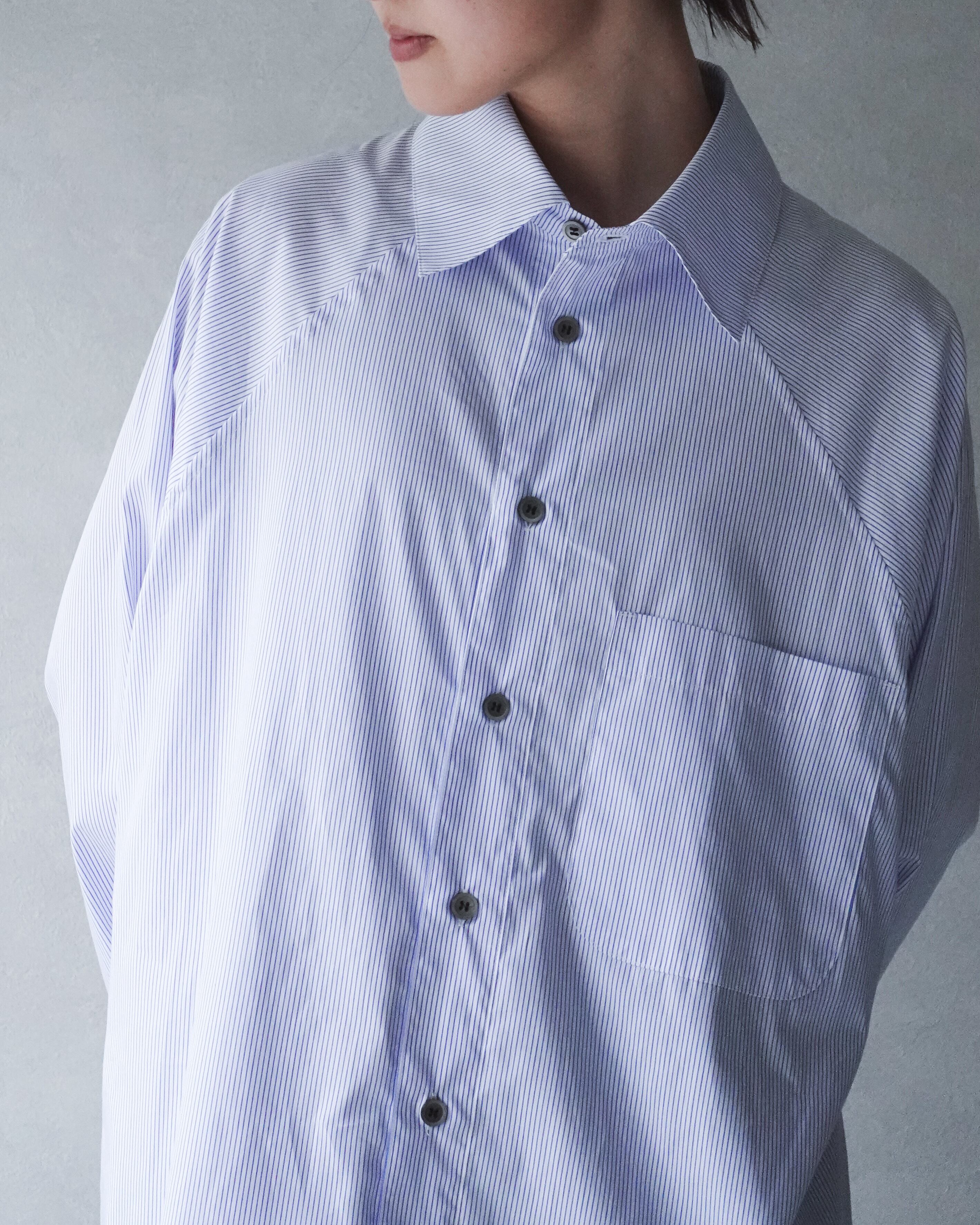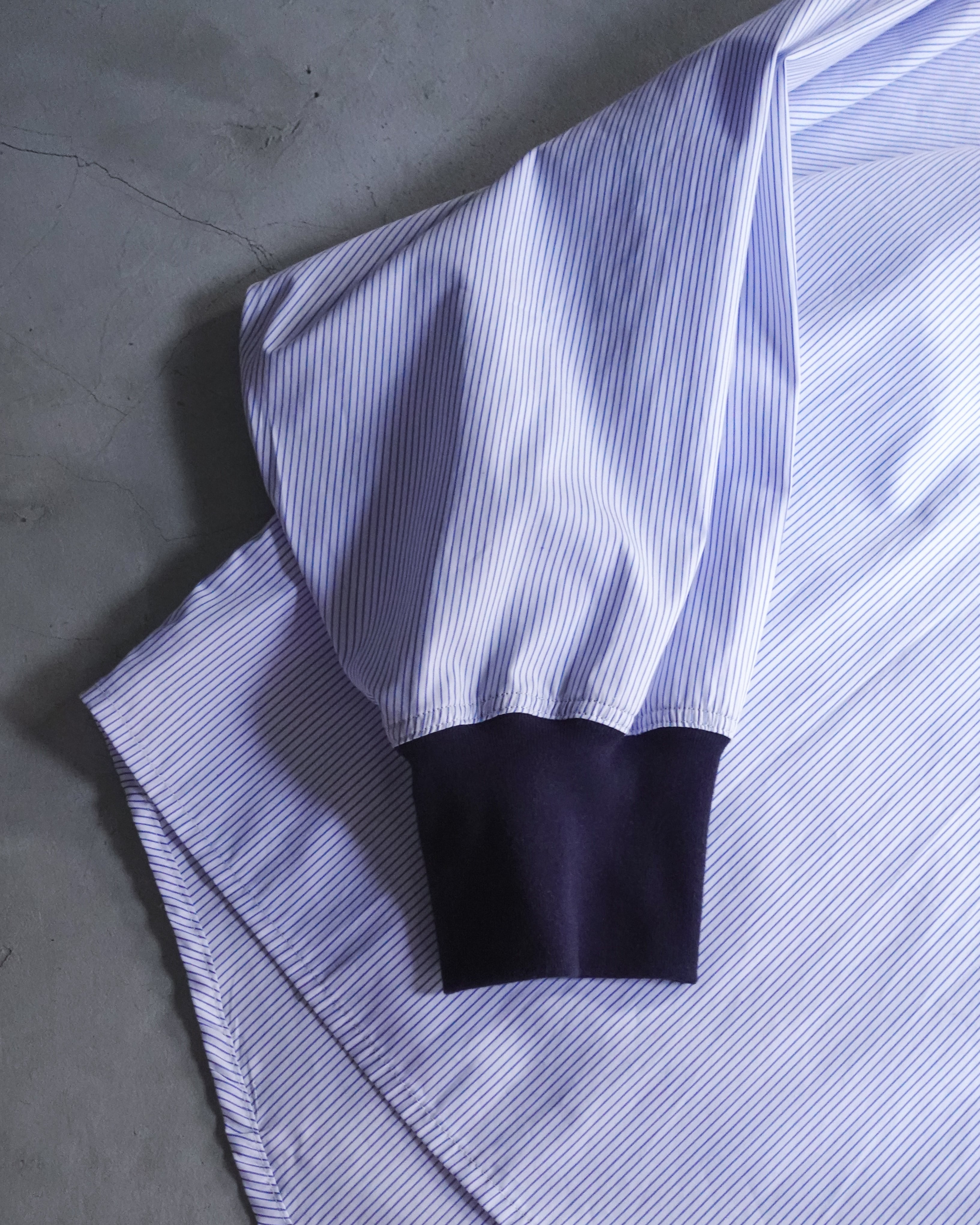 袖口のリブ使いがアクセントになっているラグランスリーブシャツ。