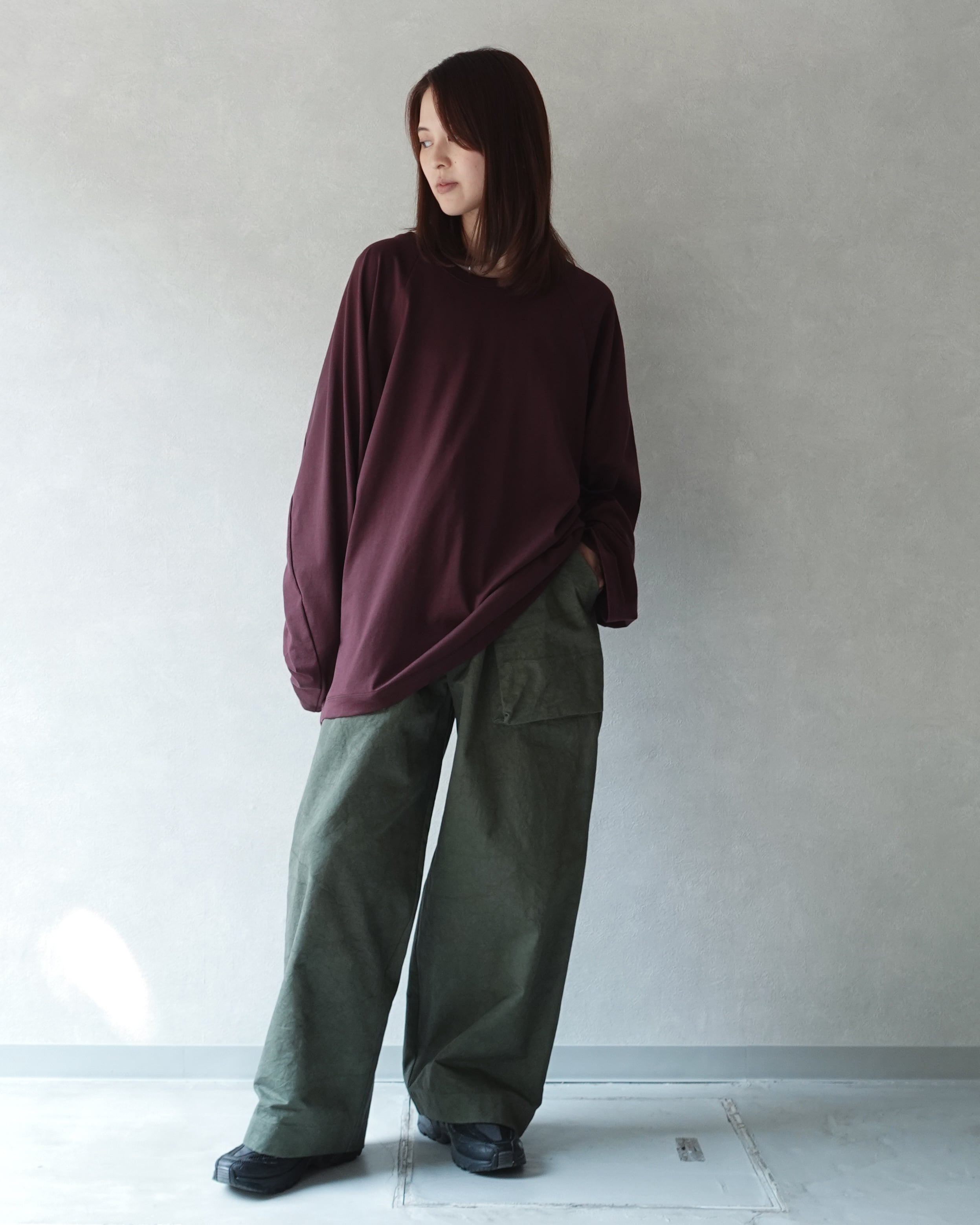 手染めの風合いと、ワイドシルエットが特徴のベイカーパンツ。