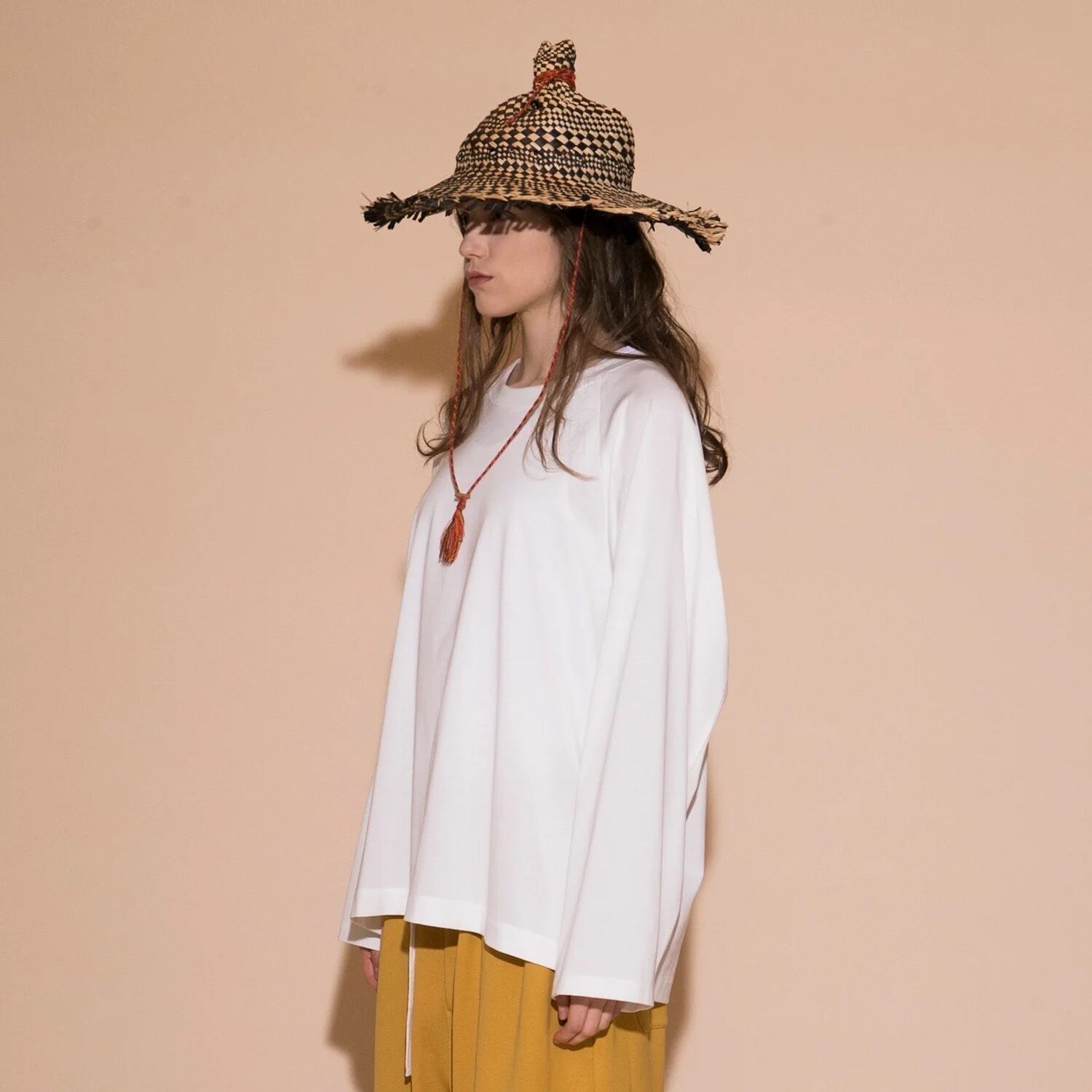 ラグランスリーブのゆったりとしたオーバーサイズシルエットが特徴。