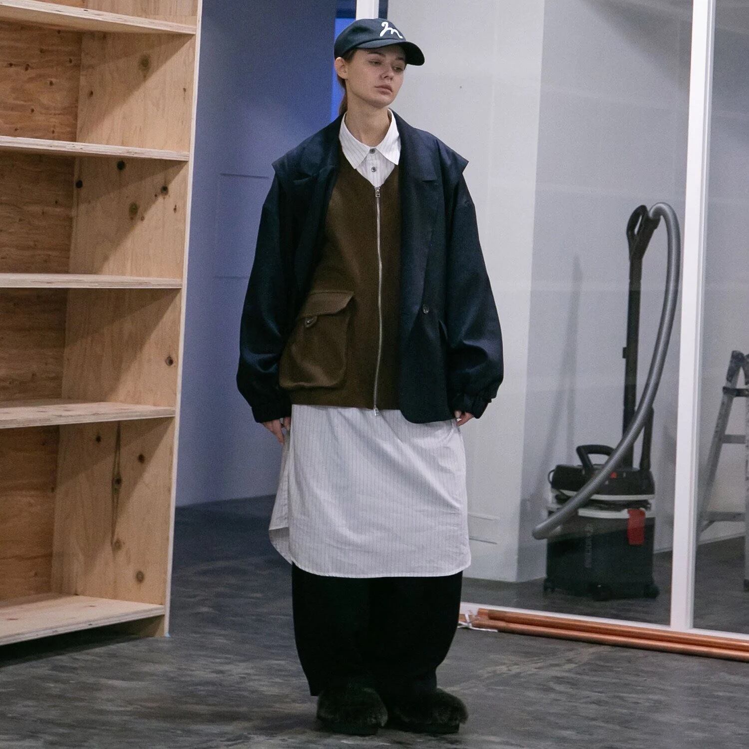 ベストでは珍しい、立体的でまるみがあるオーバーシルエットで、ジャケットやコートなどのアウターとのレイヤードスタイルもお薦めです。
