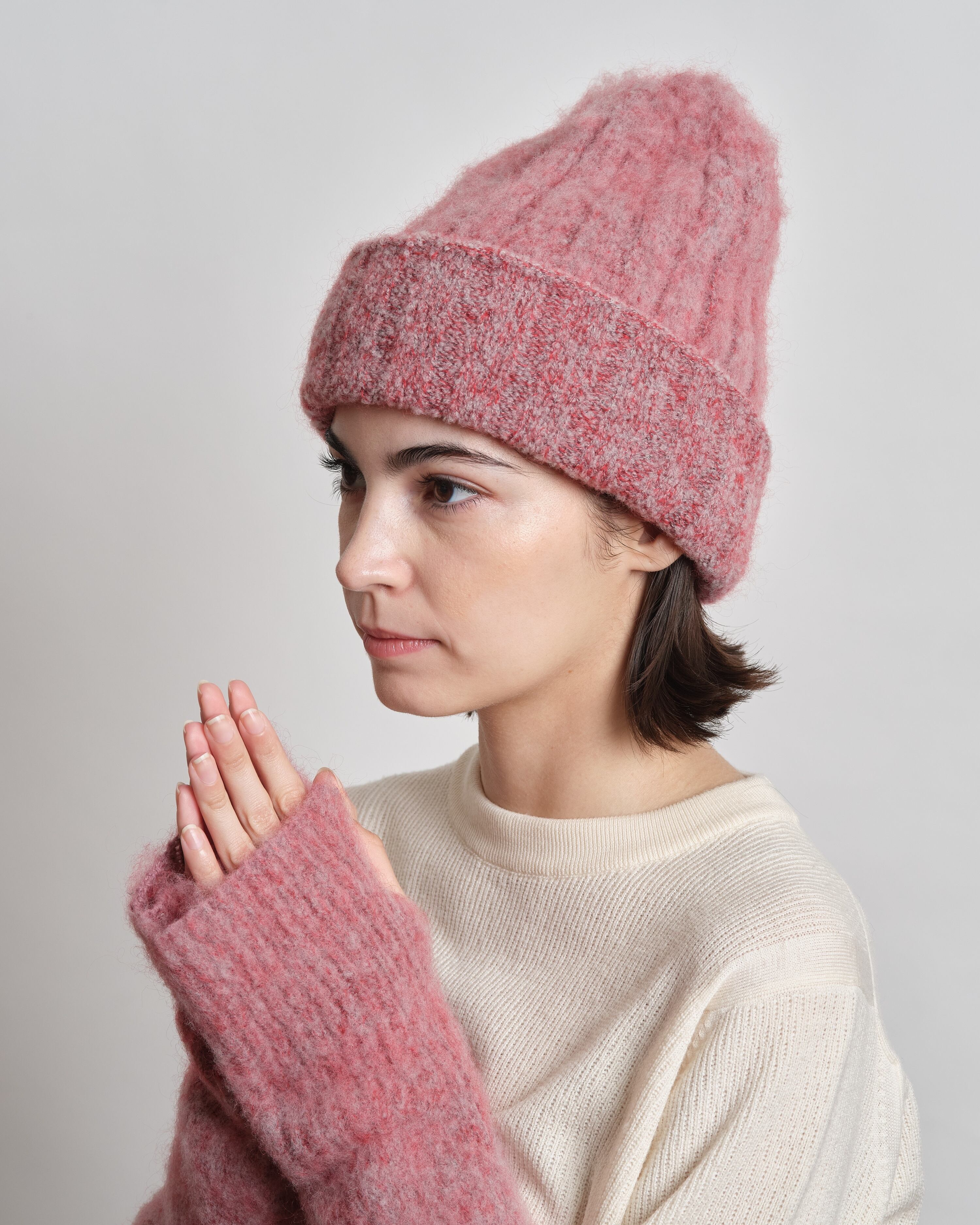 起毛させる事で、柔らかく暖かみのある風合いが生まれたモヘヤ混の素材。
