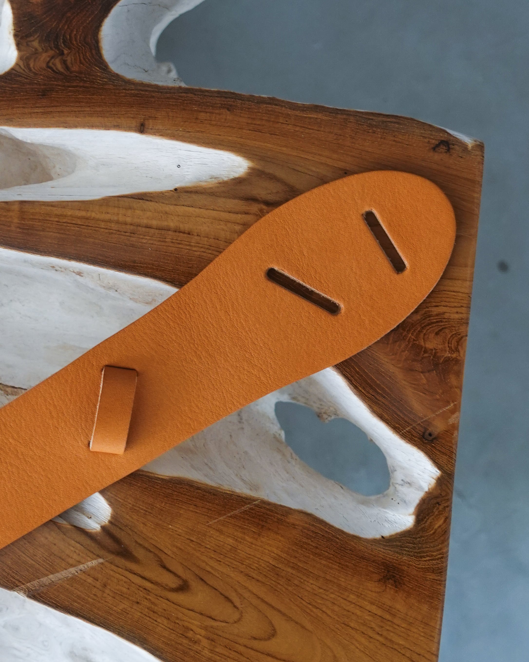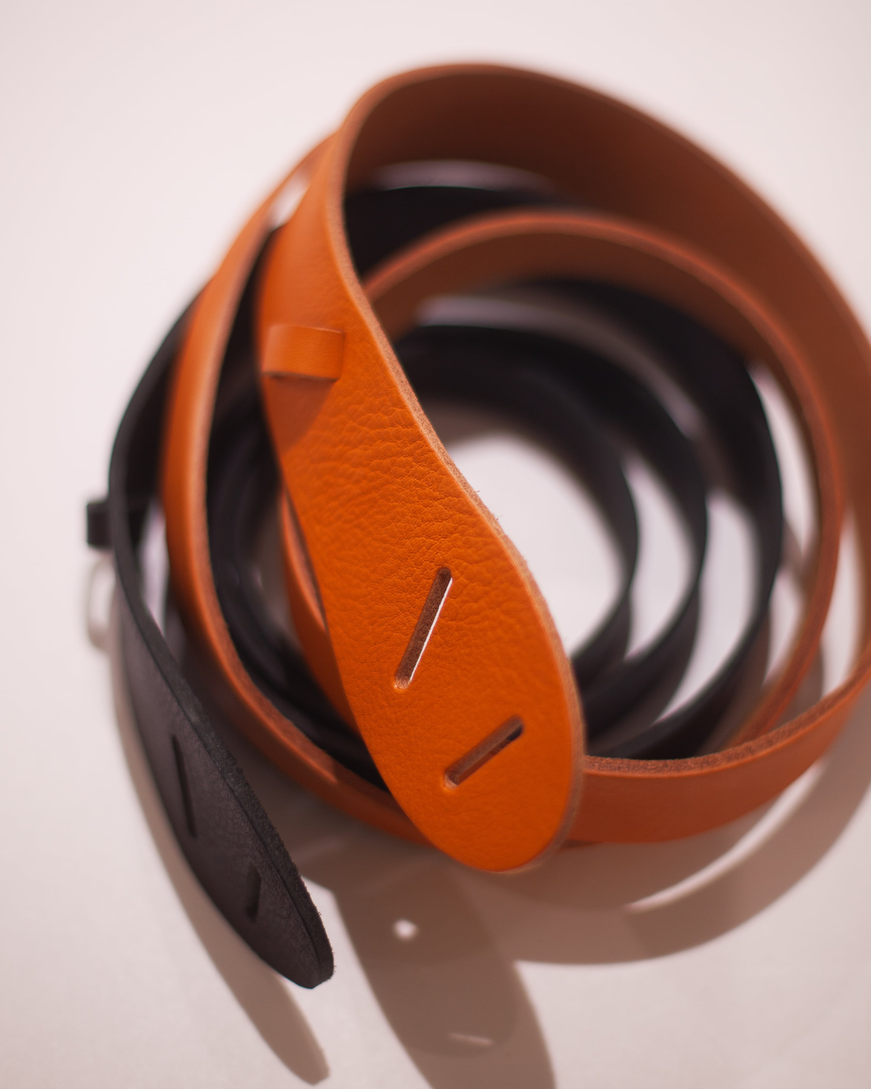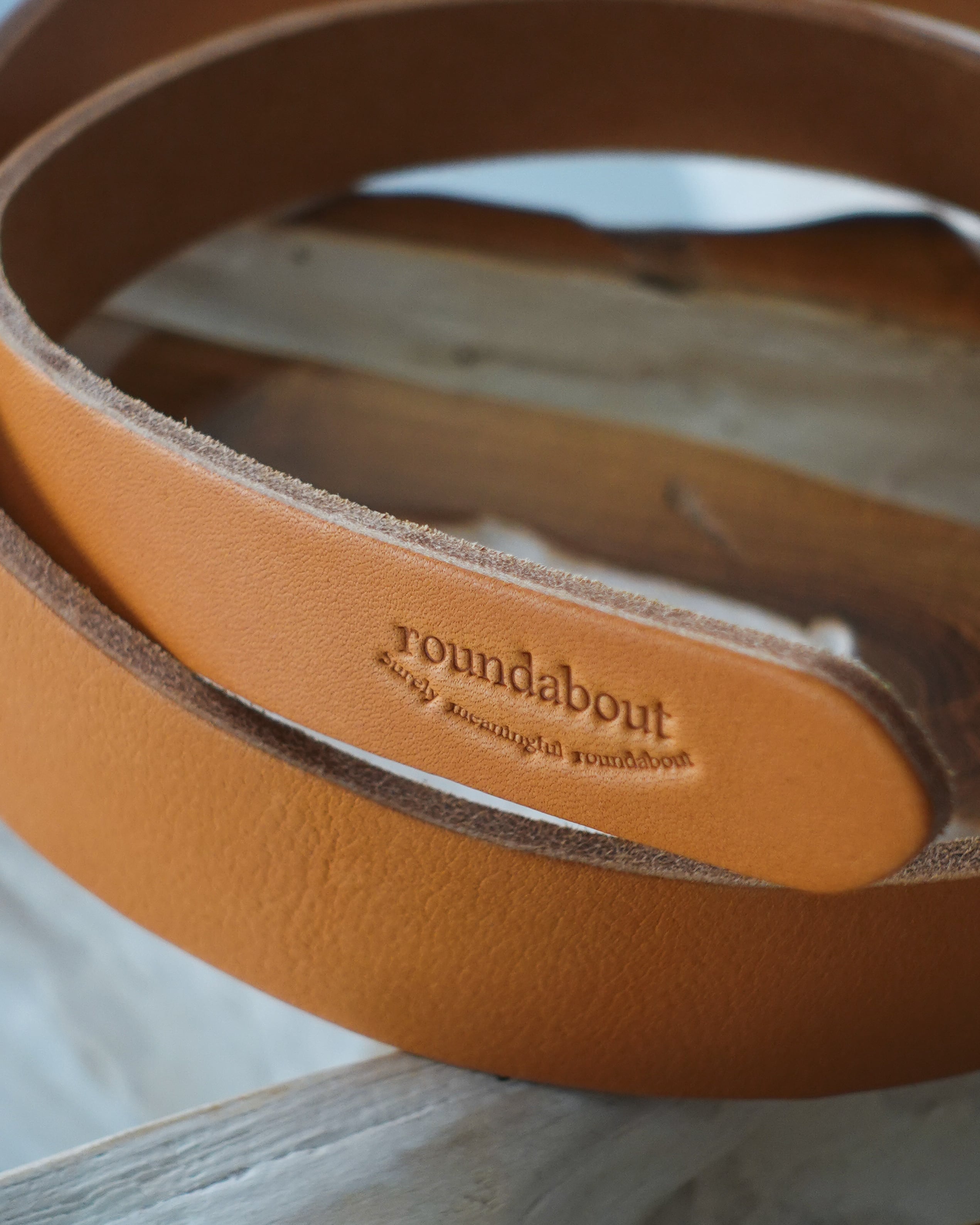 金具のバックルは使わず、革のみで制作されたレザーベルト。